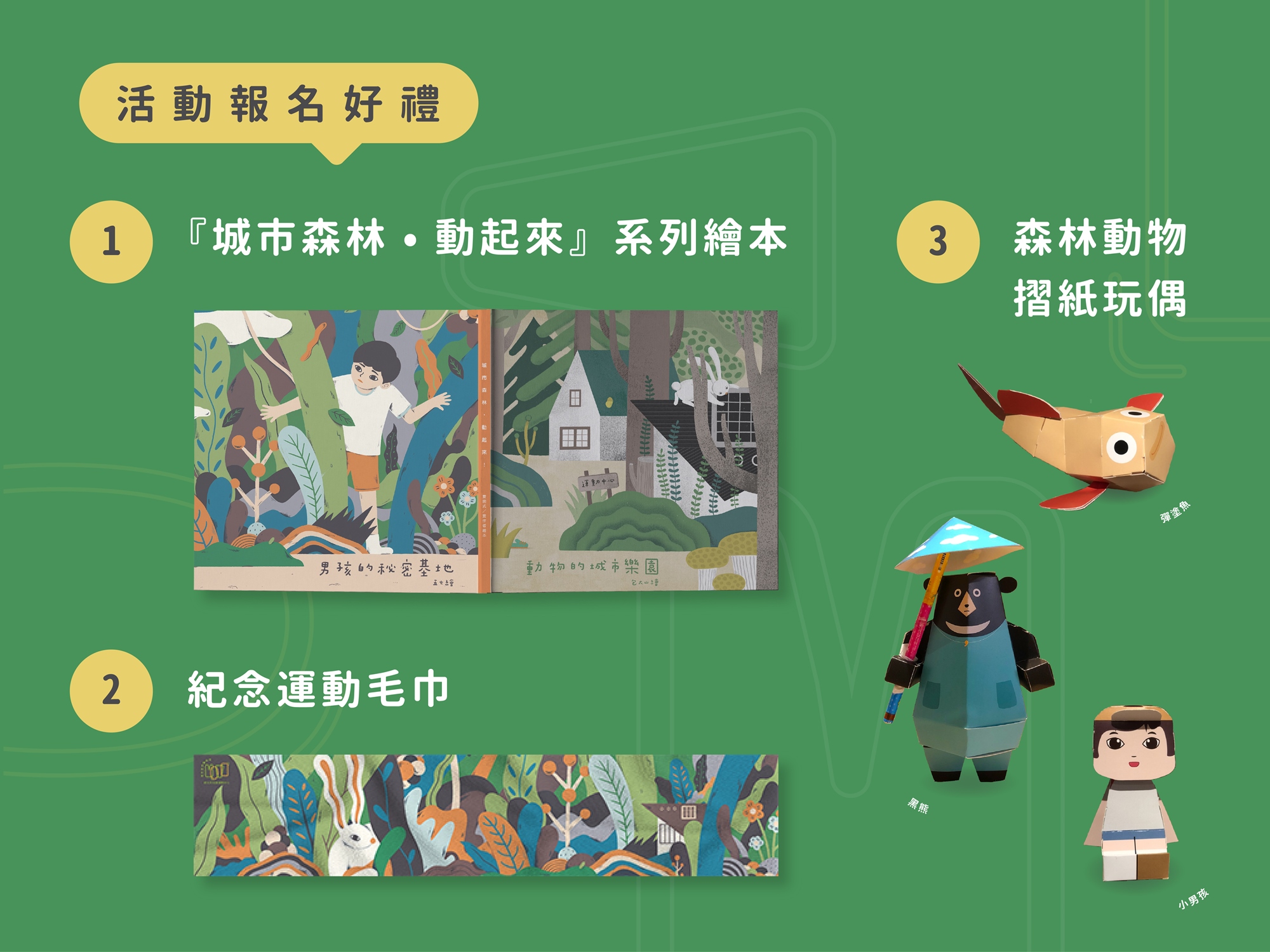 | 3 | 森林小動物摺紙玩偶 | 每人贈送一套(一套有三隻) |