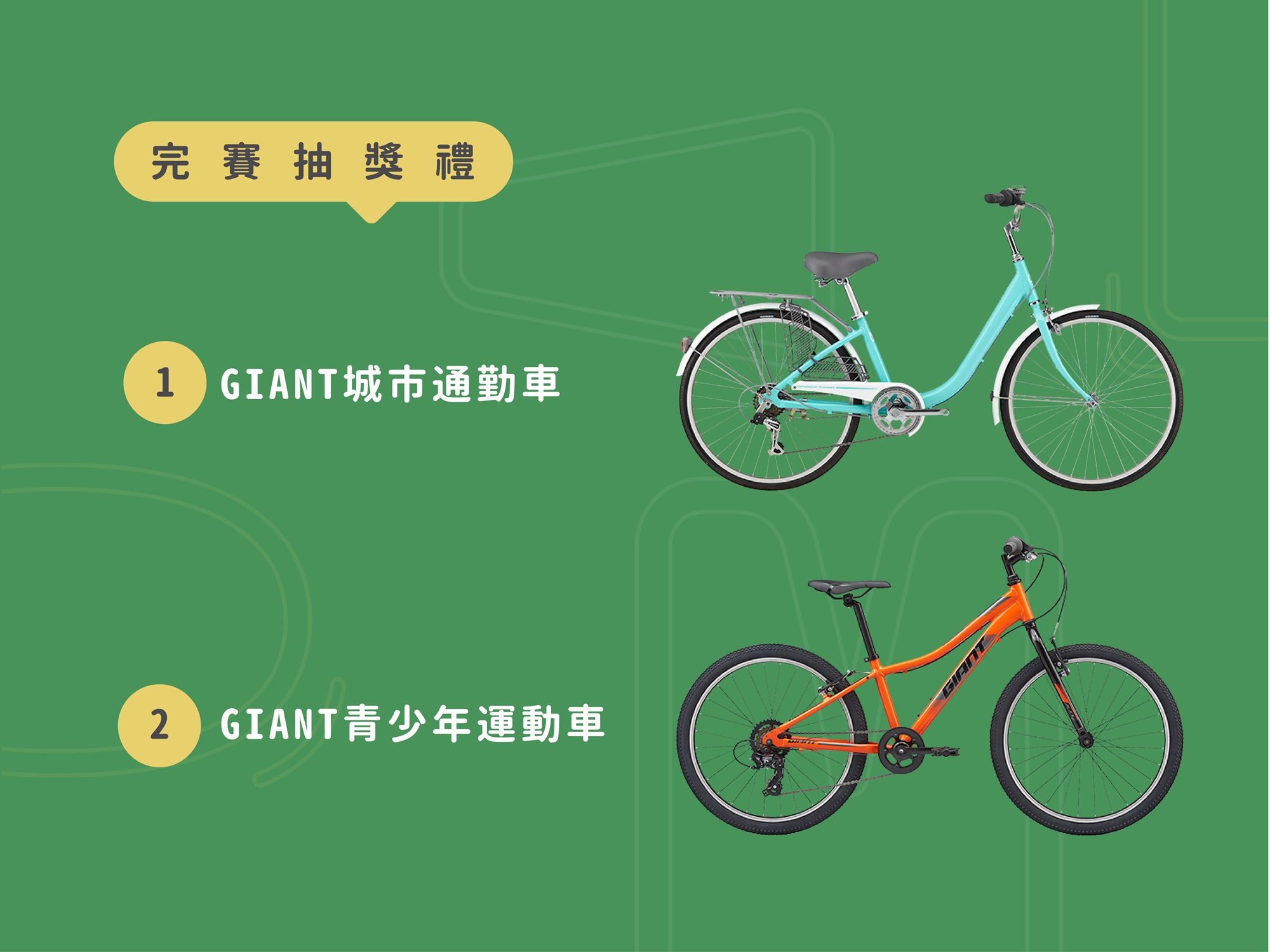 | 獎項 | 捷安特城市通勤車+捷安特青少年運動車 各一台 |