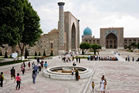 布哈拉是烏茲別克共和國的第三大城,曾是大絲路中段上最為重要的商業中心之一;馬其頓人、波斯人、阿拉伯人及蒙古人都曾在此留下歷史印記。 ●撒馬爾罕-中亞最古老的城市