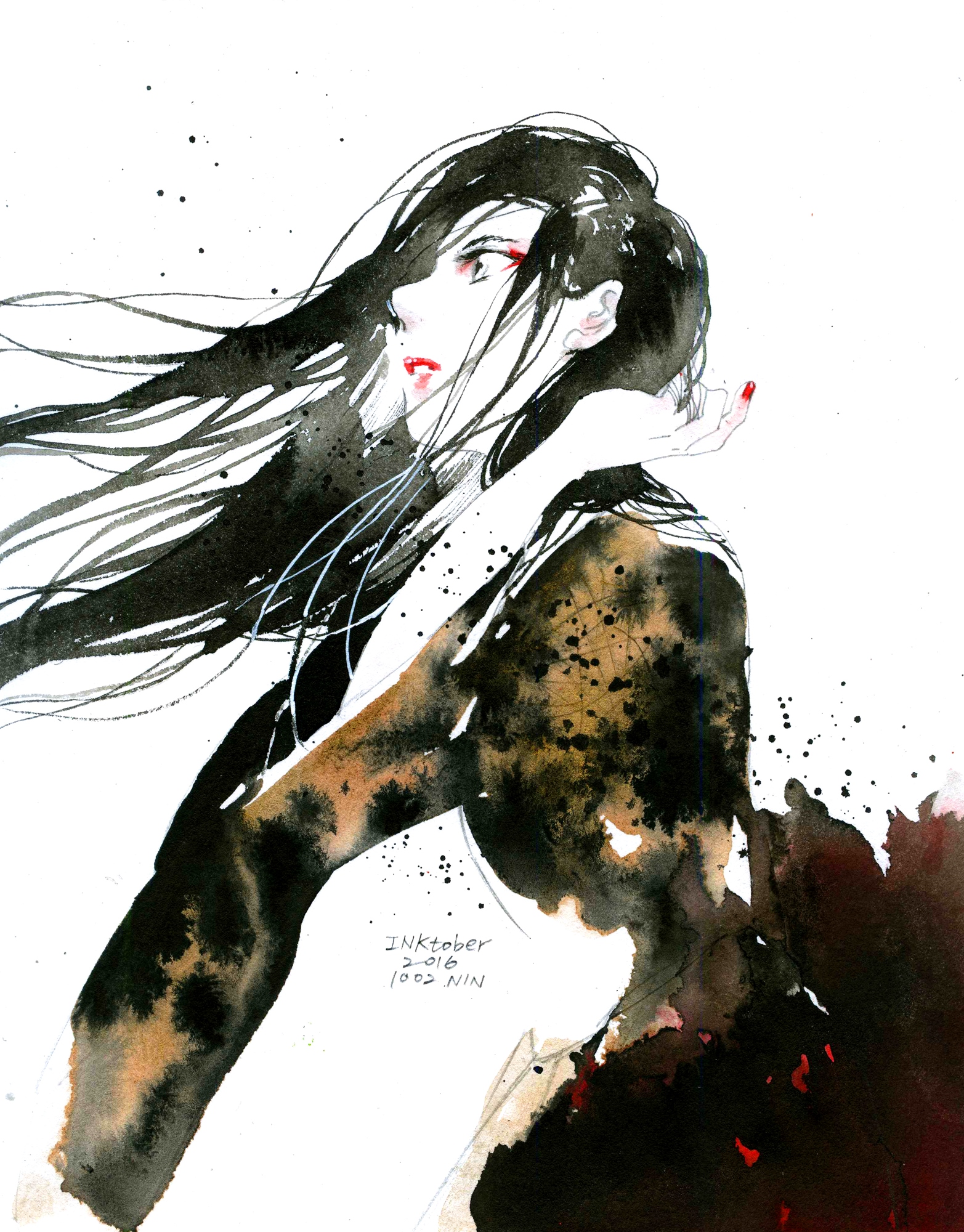 透過inktober系列的創作,NIN與大家分享繽紛的墨水色彩於紙上舞動的各種姿態,