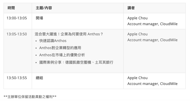 活動通報名,或至以下 CloudMile 官網報名線上研討會: