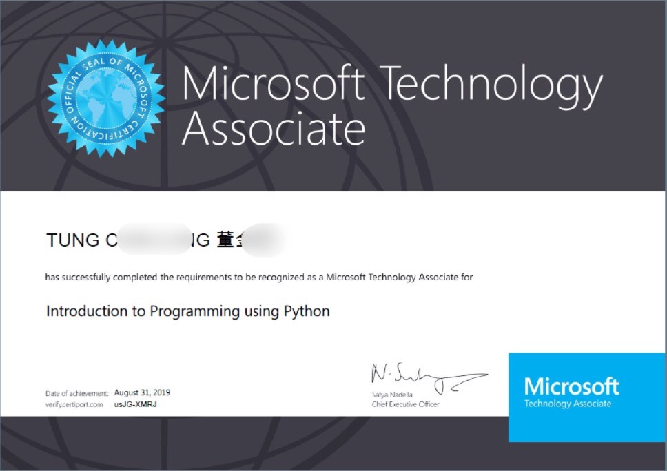 *通過測驗的同學,當日直接領取MTA PYTHON證書以及微軟考試報告
