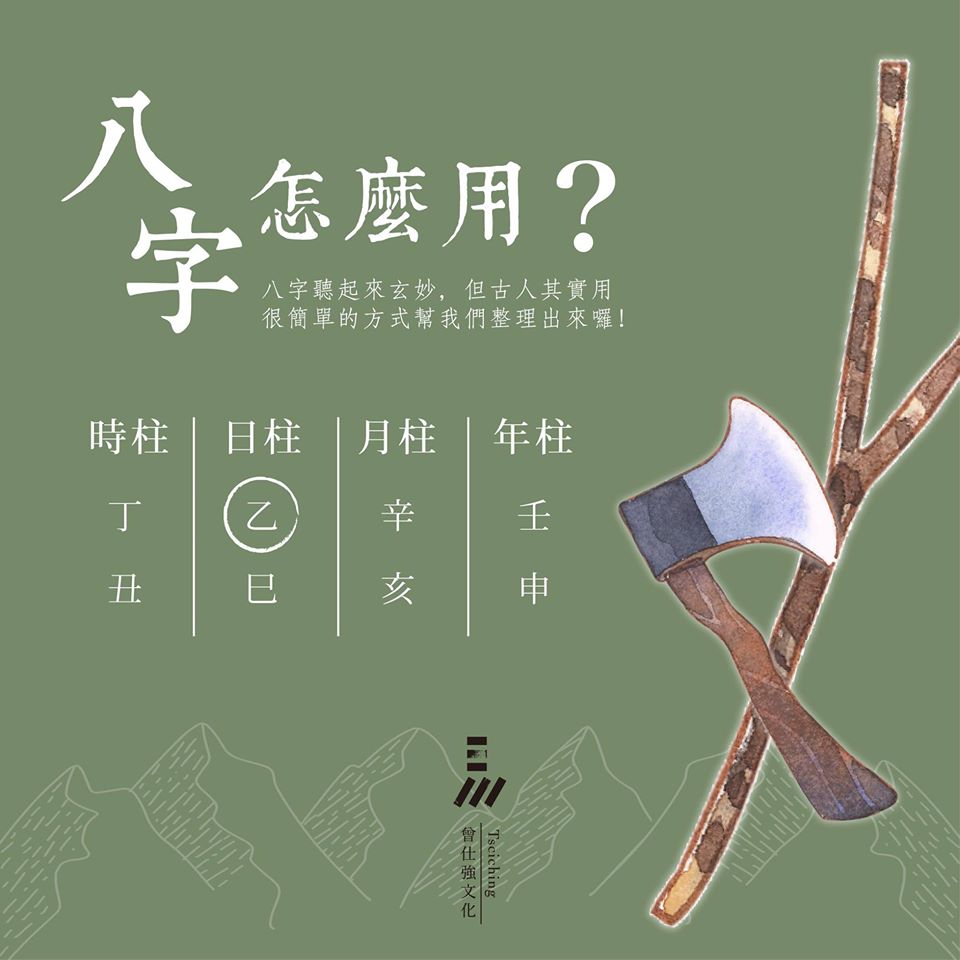例如圖中,元男下面框住的綠色『乙』字的位置,就是我們的「日主」,相當於十二星座中的個人星座,有很多的象徵意涵哦!