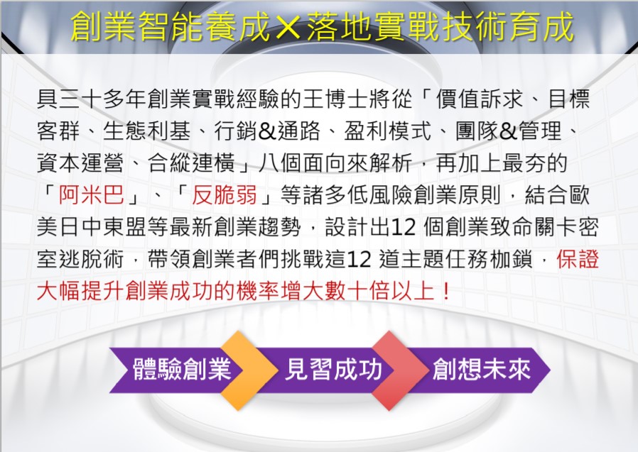 然而創業是一個不斷過關打怪的過程,如何在遇到困難之前先學習到解決之道,提升成功率,是大部份創業家的期望。
