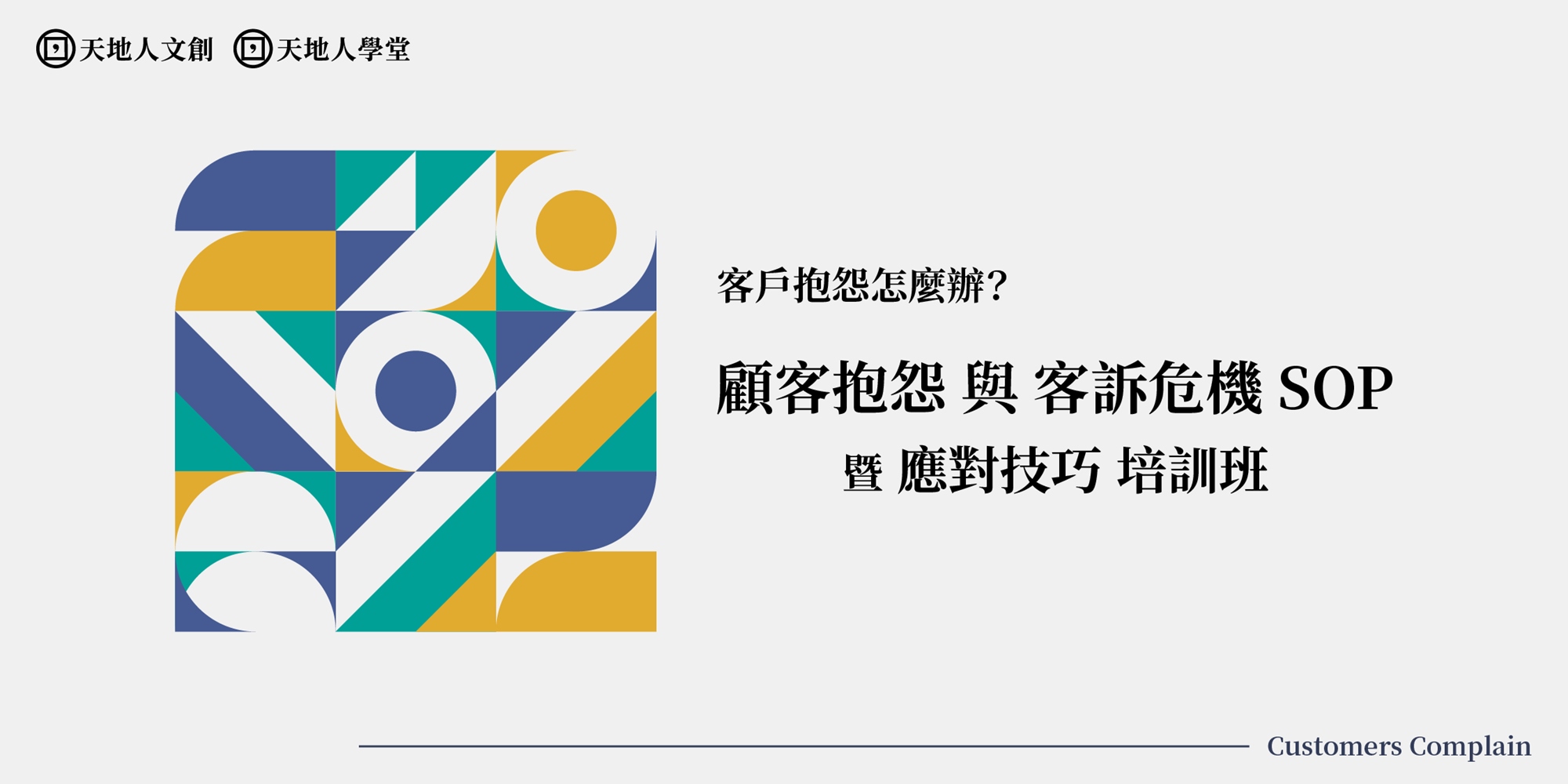 名稱:天地人學堂:天地人學堂:客戶抱怨怎麼辦?顧客抱怨 與 客訴危機 SOP暨應對技巧 培訓班