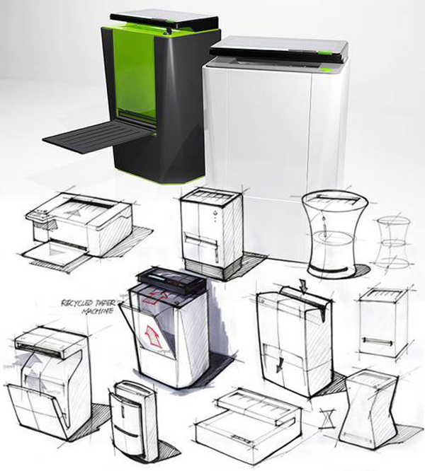 工業設計者 的設計構思,包括 產品的整體外型、各種細節特徵的相關位置、顏色、材質....及考慮產品使用時的人因工程學。
