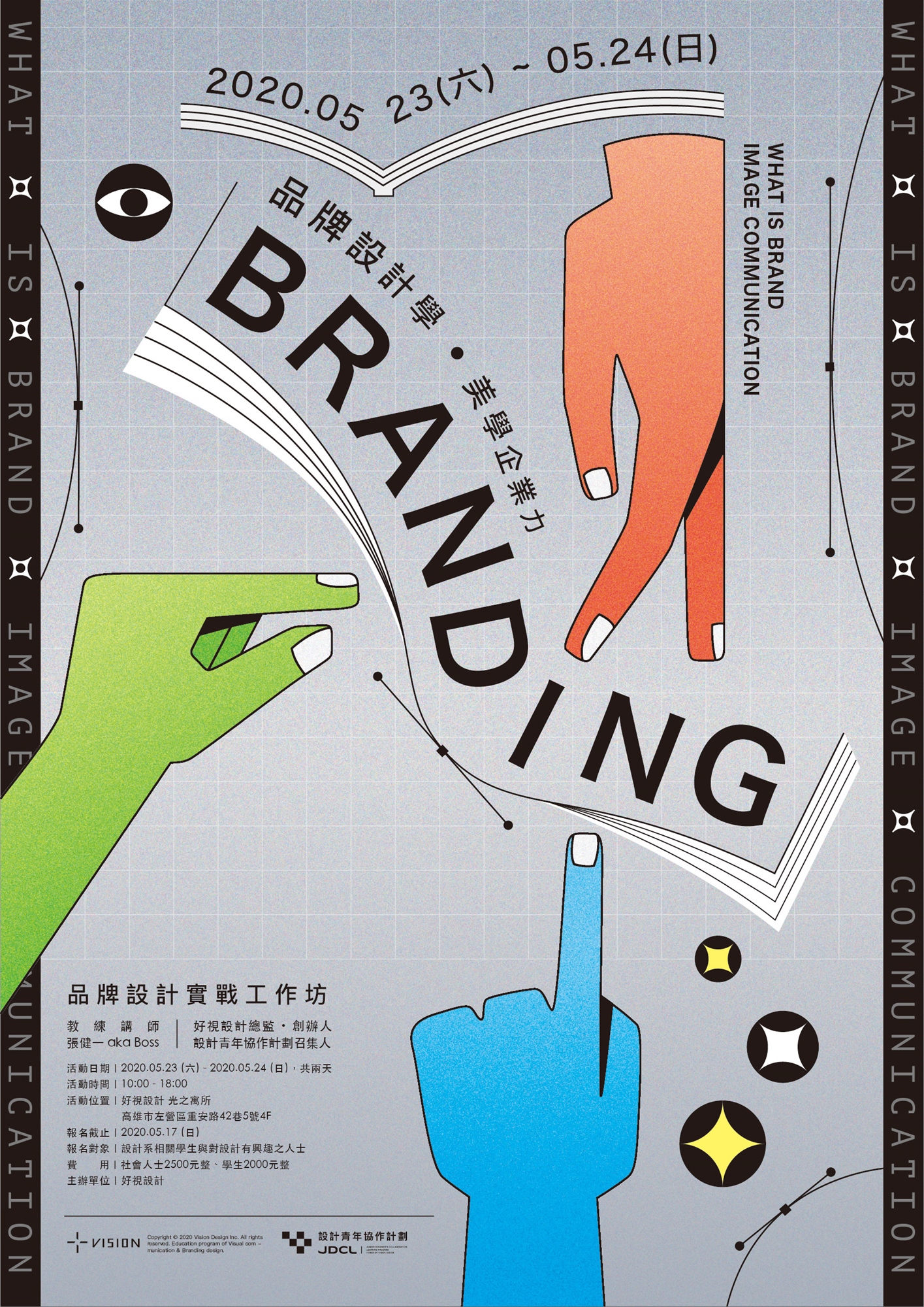 帶領您透過「品牌策略及視覺發展」從無到有建構品牌,嚴謹的品牌分析、品牌策略擬定到企業識別規劃,讓您迅速建立對品牌的認知。快來加入品牌工作坊一起進行實戰演練,也一起加入品牌設計師的行列!!!