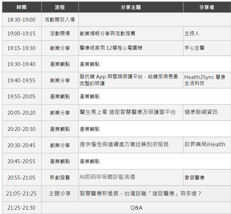 活動敬邀 「創業團隊經驗分享」、「各領域專家主題分享」、「產業創投與業主專業點評」。