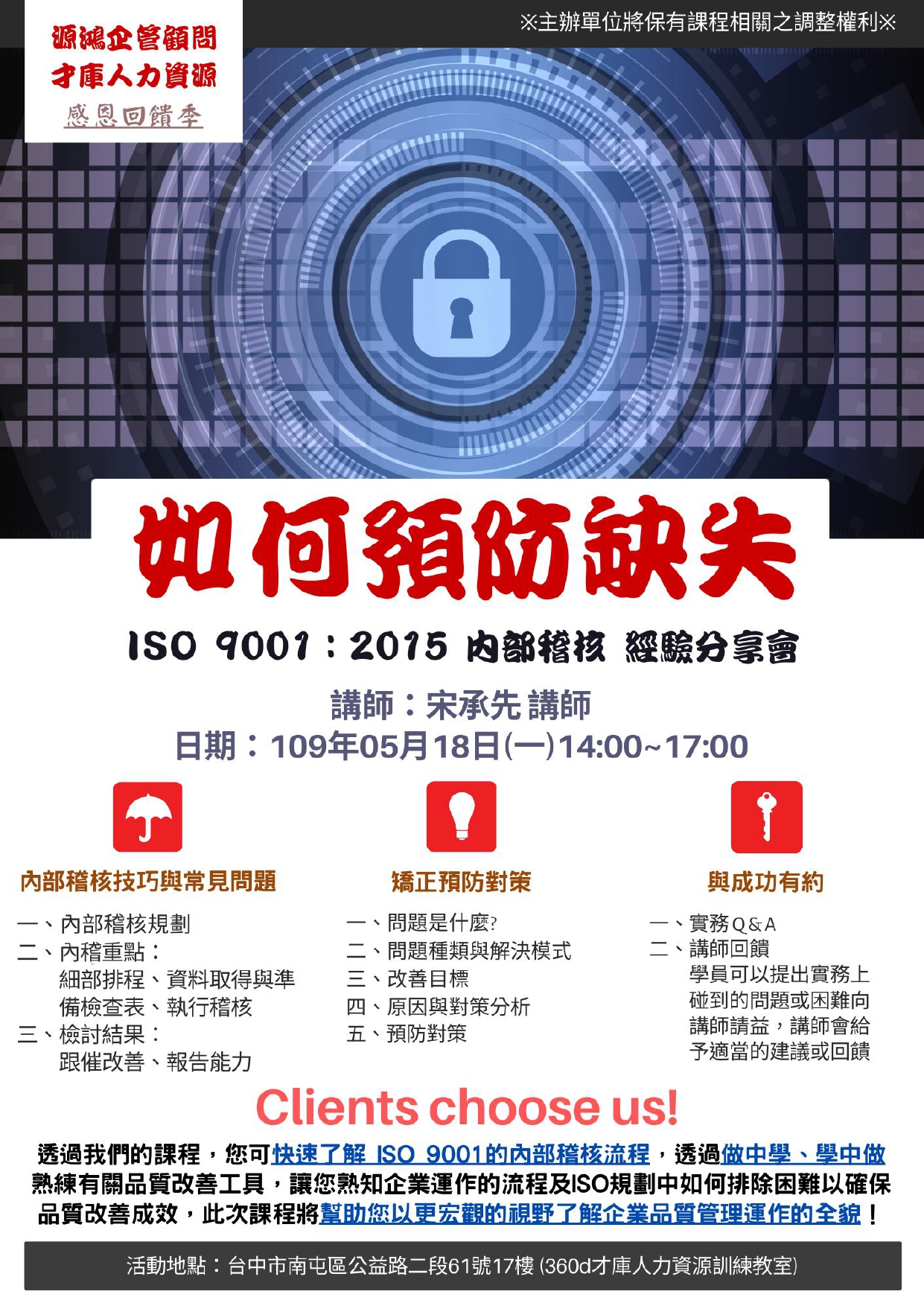 【好康福利】:參加者之後報名源鴻企管品管系列課程可享9折優惠乙次