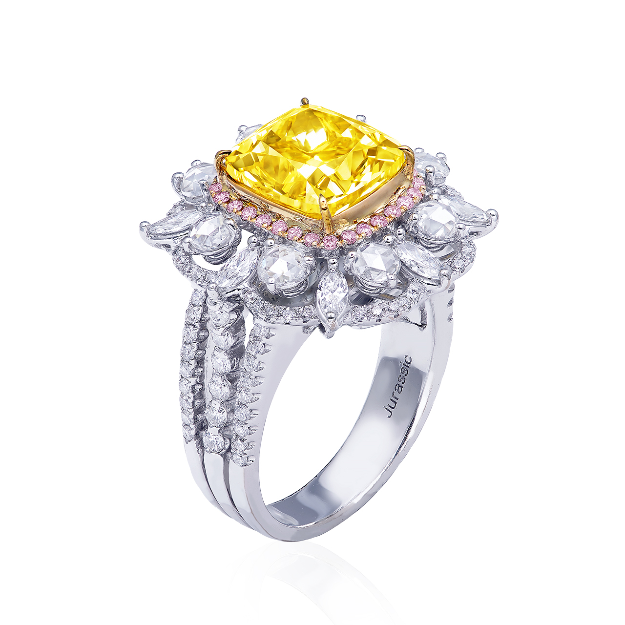 FANCY VIVID YELLOW COLOURED DIAMOND AND DIAMOND RING 艷彩黃彩鑽讚石戒
