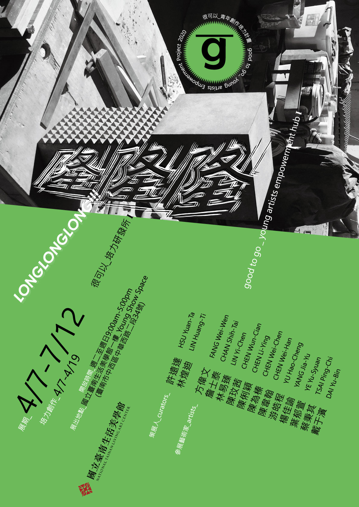 隆,本身的字義也有隆起的概念,是深厚也是高起,是內部一某種不可見能量的蓄積,擠壓表面而膨脹鼓起成型的一種狀態。象徵本展資深藝術家也是青年藝術家的內在狀態,滿滿的創作能量,蓄積於內在,隆隆隆地在外表藉由媒材成形,成為作品。隆起,同時也是有潛力青年藝術家的徵候,等待春雷「驚蟄」。青年藝術家有著無比的潛力,像是埋藏在春天大地裡的萬物,等待大地春雷,轟隆巨響,萬物生長。資深藝術家將在〈隆隆隆!!!〉與青年藝術家林易臻、陳玟茜、陳俐穎、陳為榛、陳韋翰、游皓程、楊佳諭、葉郁萱、蔡秉其及戴于濱等人,分享創作生涯經歷並與觀眾分享他們的青年的當藝術新發現。