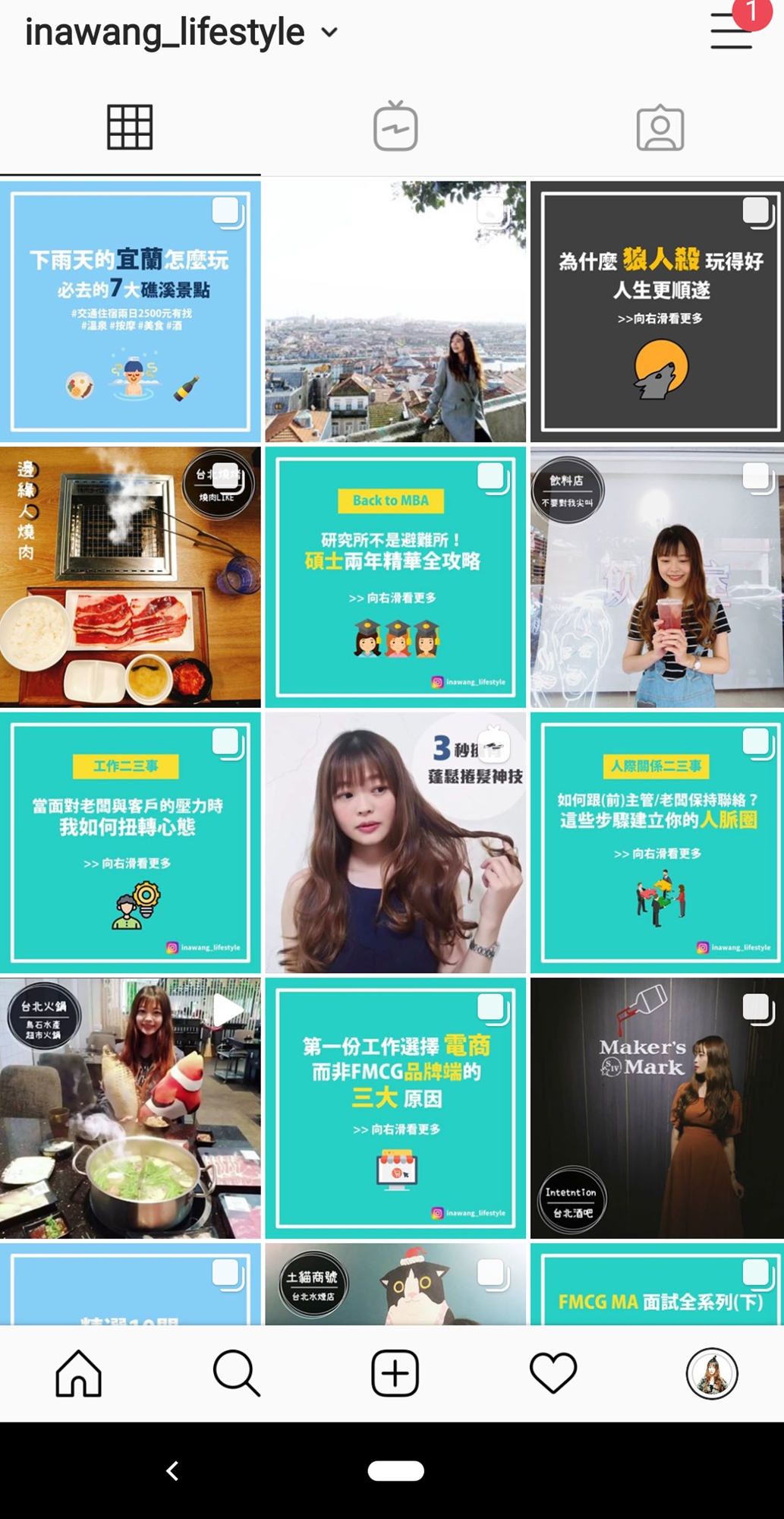 我的Instagram帳號,目前主要寫「工作」、「職涯」、「行銷」跟一些有趣的社會觀察 (例如:集體厭世風潮盛行的背後理由、為什麼明明很累卻始終戒不掉熬夜),有時候會分享一些美食、旅遊資訊或感性的文章。