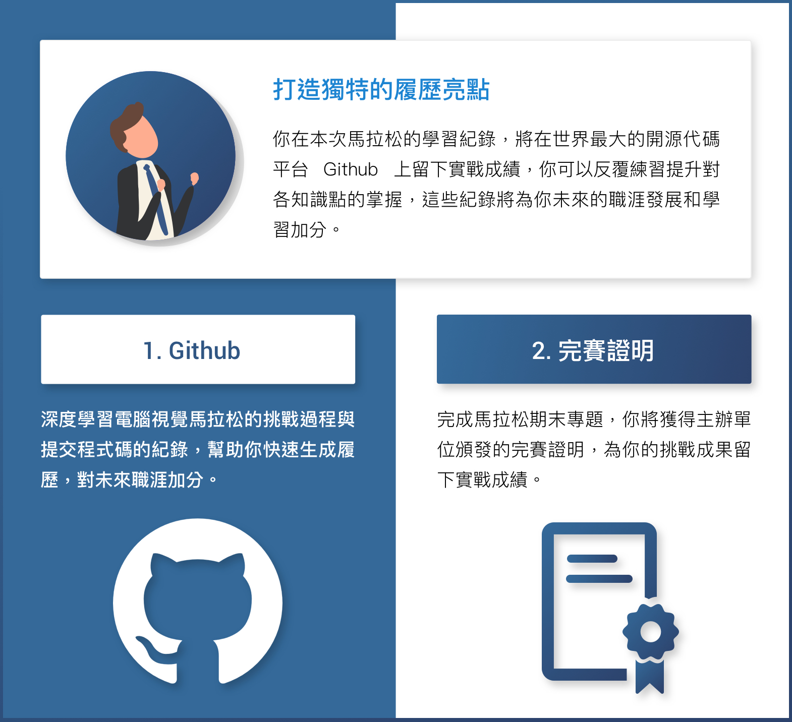 2. 參與並完成期末專題目標,將頒發完賽證書。