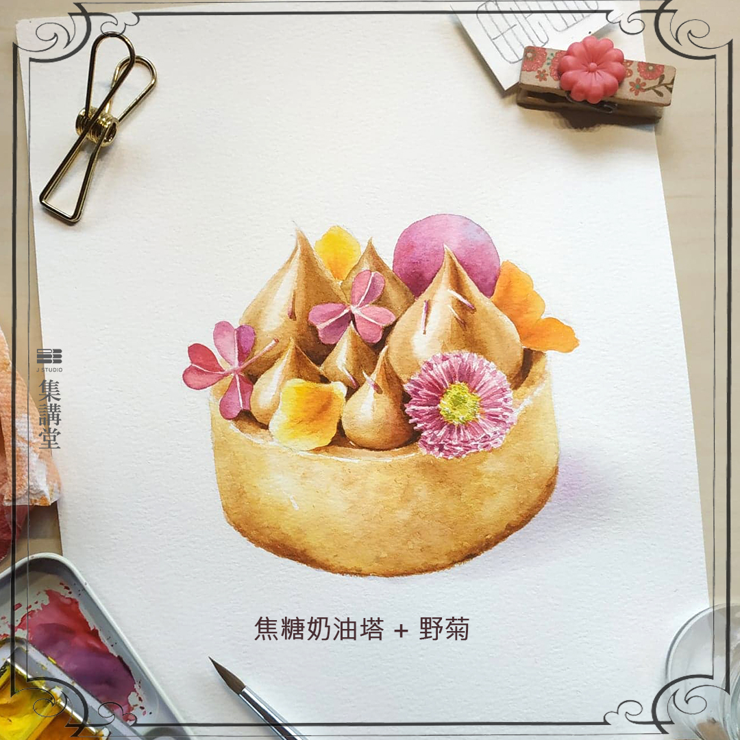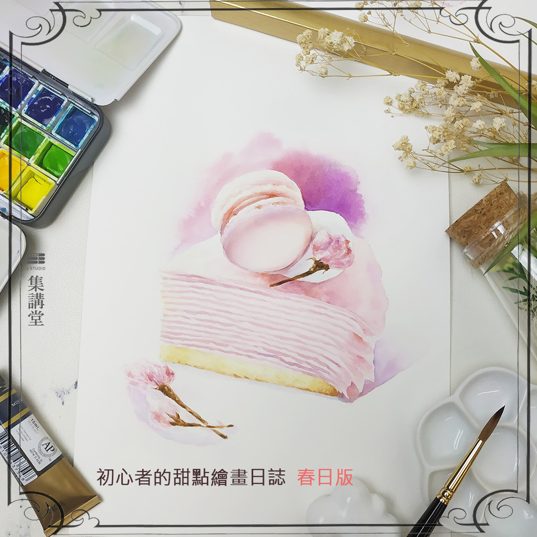 延續集講堂的熱門下午茶蛋糕水彩議題,這次春日版 Effie 老師帶來了一系列粉嫩色系的甜點!有千層蛋糕、慕斯粉紅巧克力蛋糕、還有焦糖奶油塔。這次還有加入跟『花』有關的議題, 每一個蛋糕上都搭配了花卉的巧思。 除了學習美食甜點的速寫, 也讓你掌握畫花草的技巧哦~