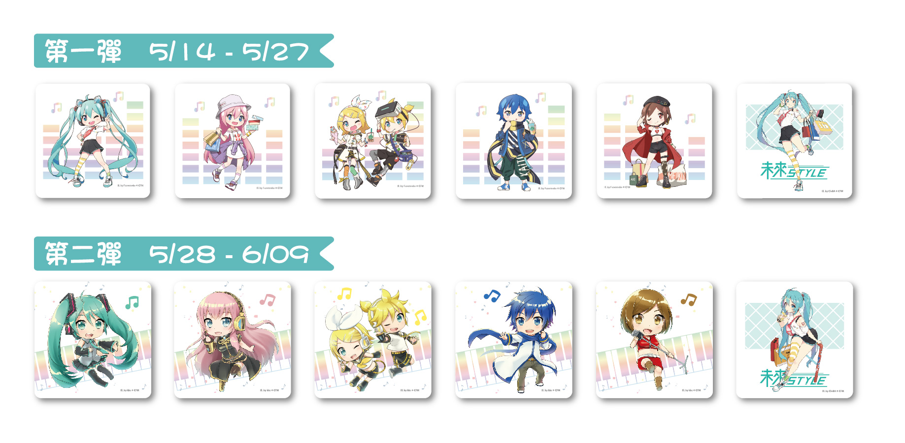 飲品將會附上獨家設計的piapro角色吸管套與紙杯墊,紙杯墊有兩彈共12款,只要單點任一飲品,將隨機贈送典藏紙杯墊!款式皆隨機贈送無法挑選。