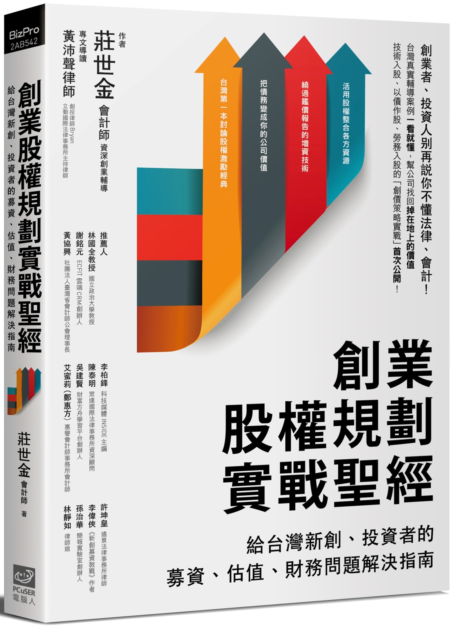 - 本書作者是長期輔導台灣新創團隊的會計師、法律專家,幫台灣團隊解決過許多創業的股權財務問題。本書是他的獨門方法集結,真實可操作。