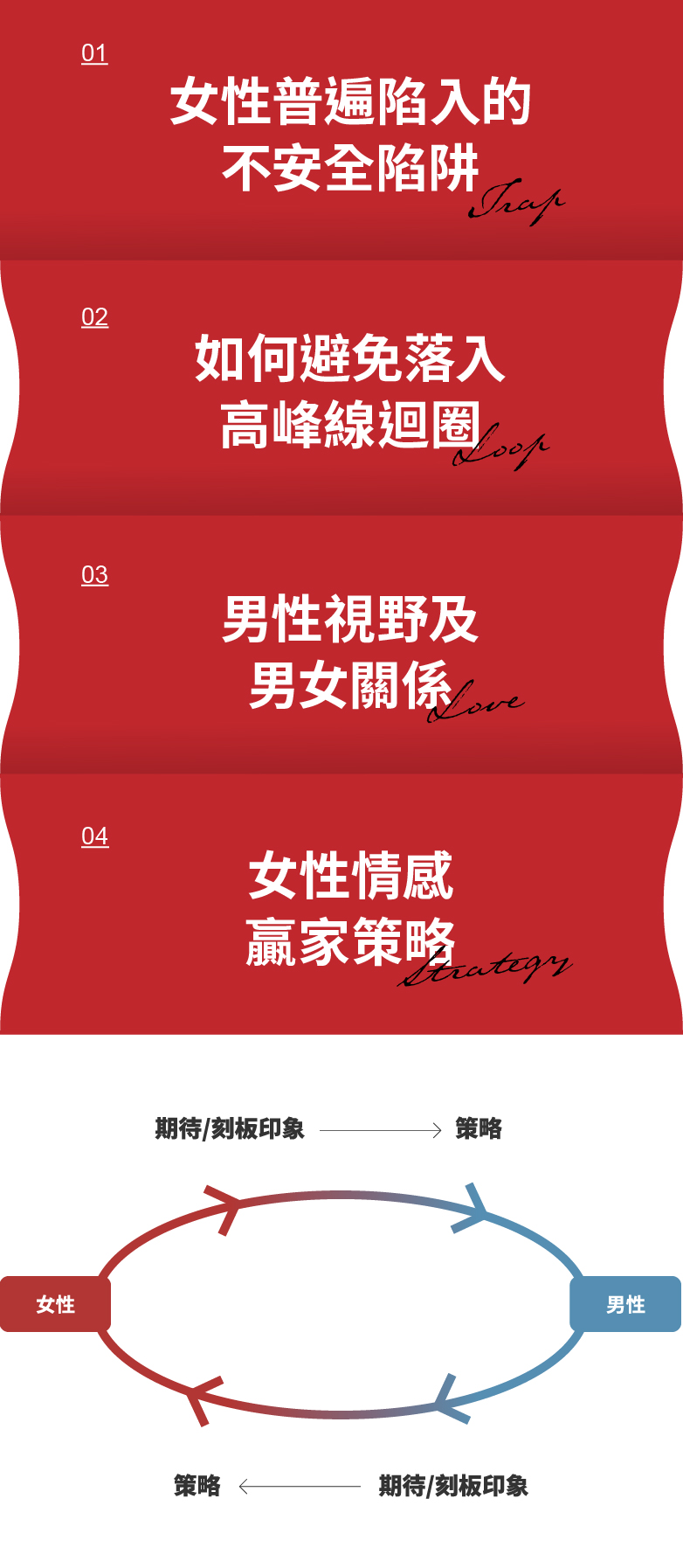 《Be A Winning Woman》將扭轉這一切,為女性提出全新「情感必勝策略」,讓女性從情感中的被動弱勢方,化身主導方,打破刻板印象限制,不再陷入「高風險迴圈」,有智慧地成為情感贏家。