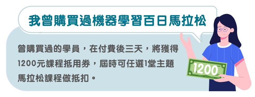 9. 機器學習百日馬拉松的舊學員購買本課程將獲得 Cupoy 1200 元課程折價卷!