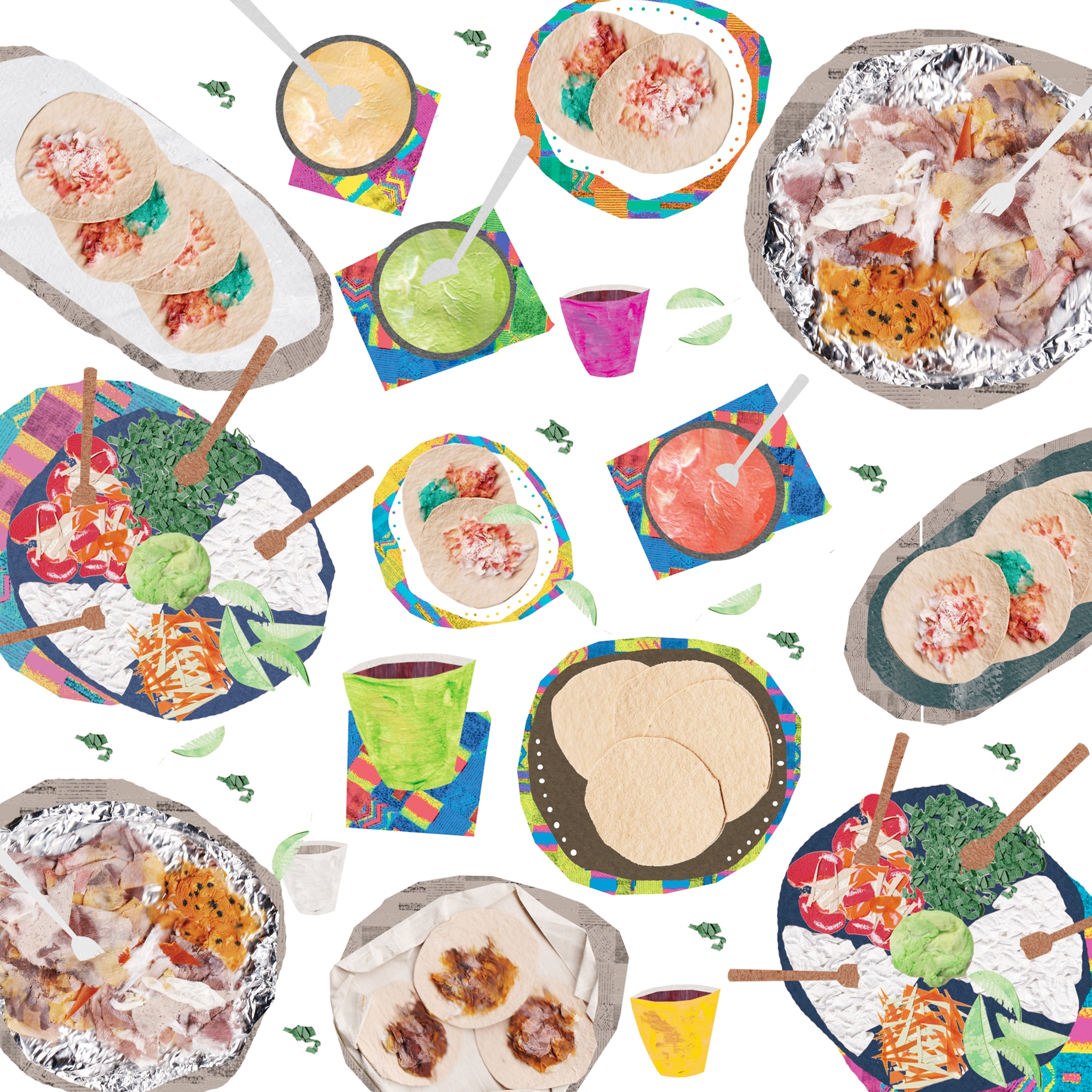 1.紙材、材質介紹與應用 2.如何規劃草圖? 3.一起來自製拼貼材質 4.拼貼練習—我最愛的食物
