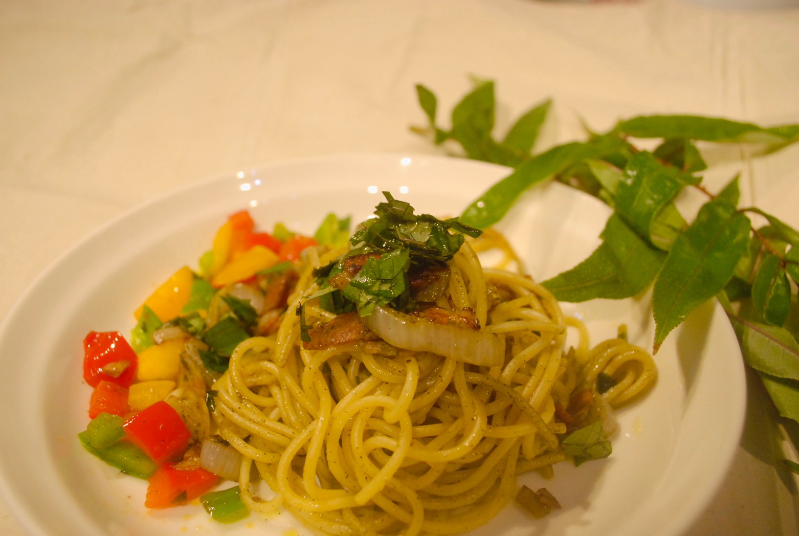 將原住民傳統香料融入義大利麵,以醬汁收乾的傳統清炒方式,重新詮釋刺蔥的層次口感,感受大地氣息。