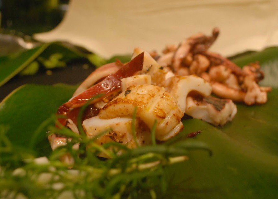 經過馬告醃製過的魷魚,馬告香氣已完全融入魷魚,在鍋上以奶油煎至金黃,清新爽口的滋味,在炎夏也不負擔。