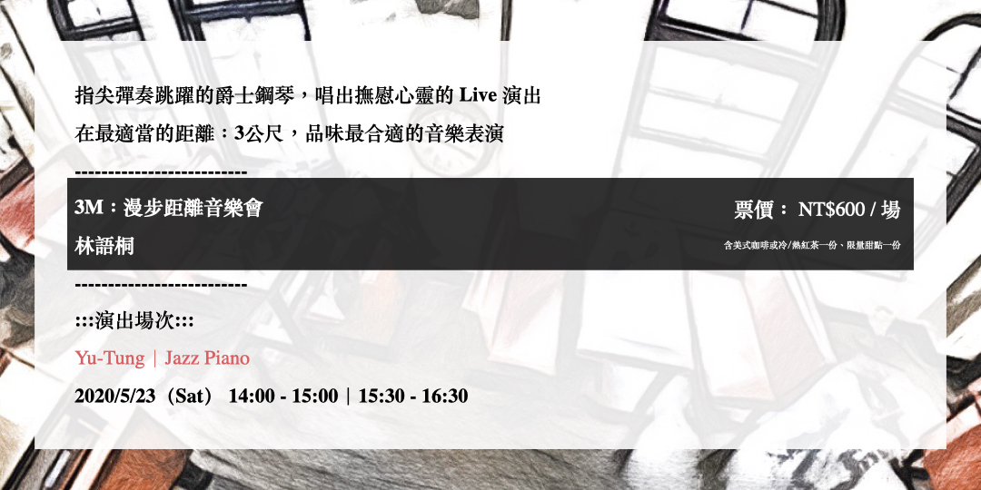 所有演出場次及環境皆為全日通風場域,並配合政府防疫措施進行全面消毒之安心場所,