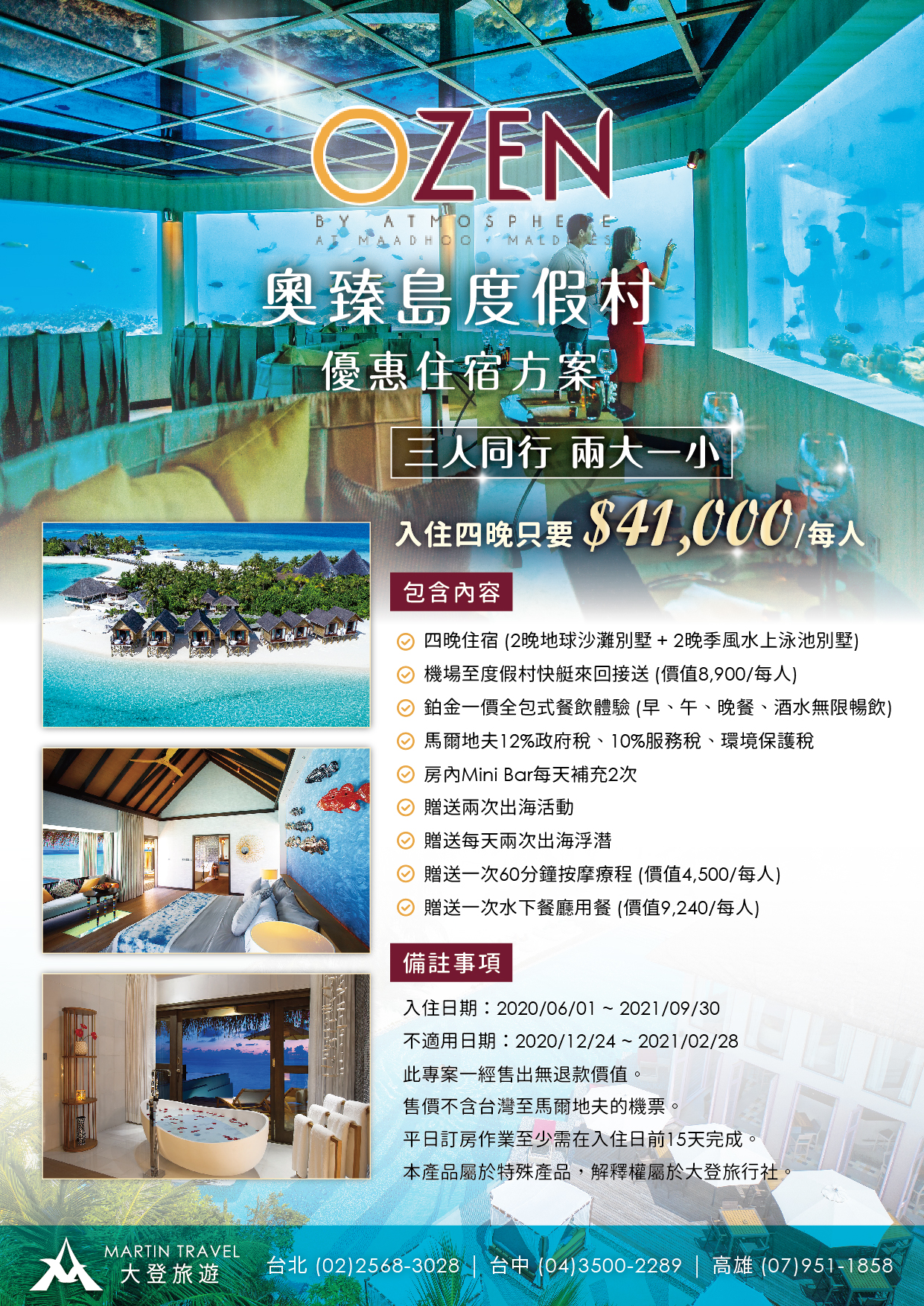 奧臻島一次滿足您馬爾地夫住宿+水下餐廳用餐心願