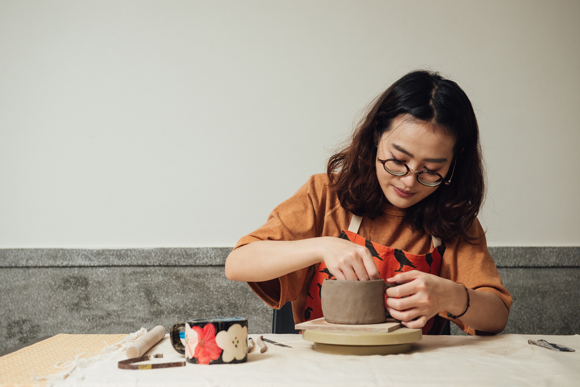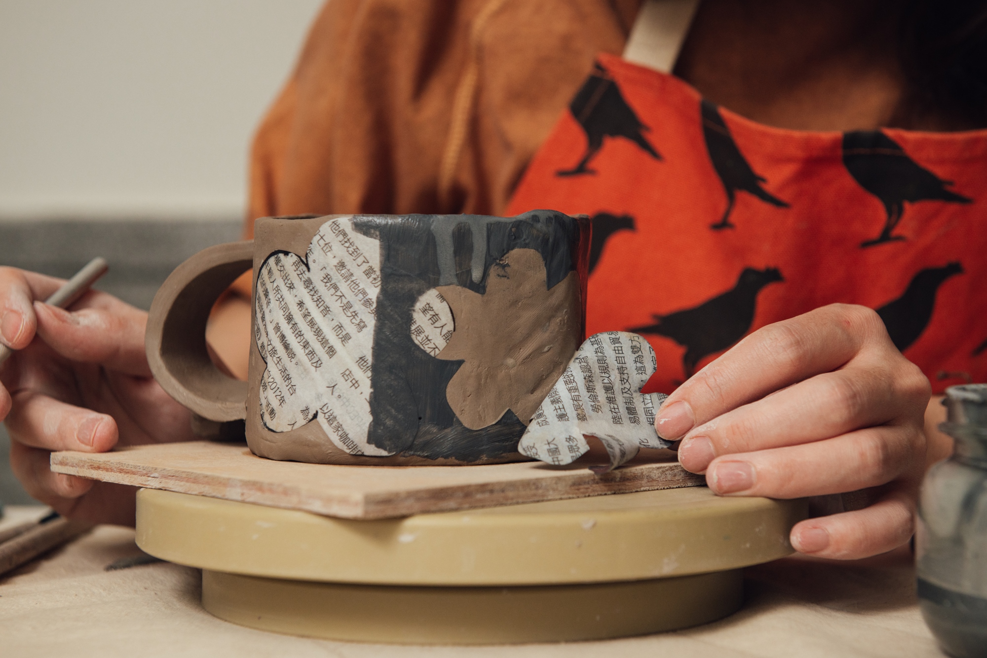 結合陶作與型染的課程,先塑形出充滿手感的陶碗,再依個人喜好裝飾上色,享受療癒的做陶時光。