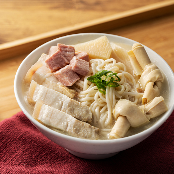 湯底用老母雞、豬腳、豬後腿、赤肉、豬皮等多種食材,一碗盡收豐厚膠質精華,湯頭濃郁,一口即享五星級美味。