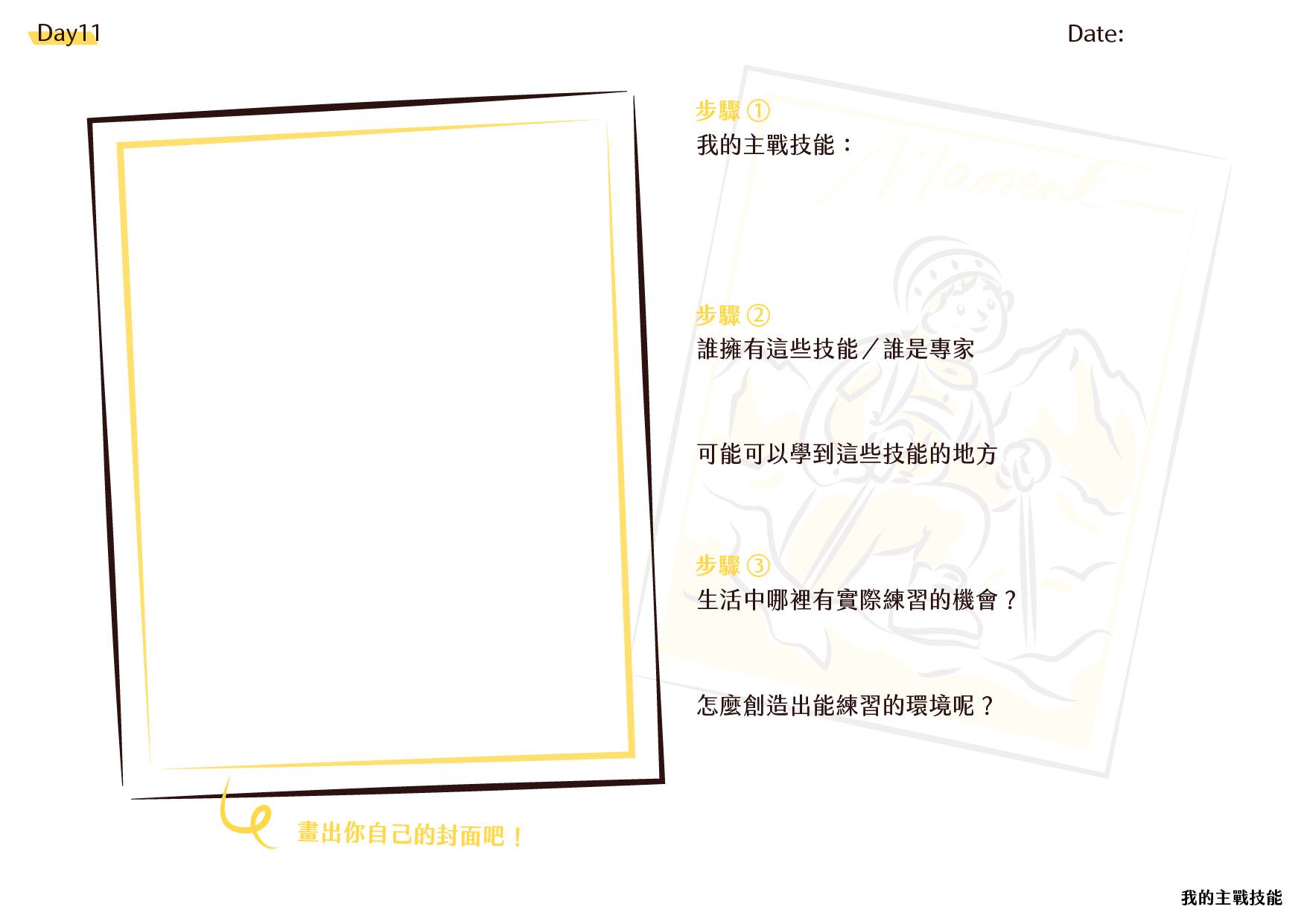 6/14 討論 | Day 7. 嗨!十年後的我 Day 8 嘿,10年前的我,你過得好嗎? Day 9. 我的理想工作日 Day 10. 哪些事,我想找出答案? |