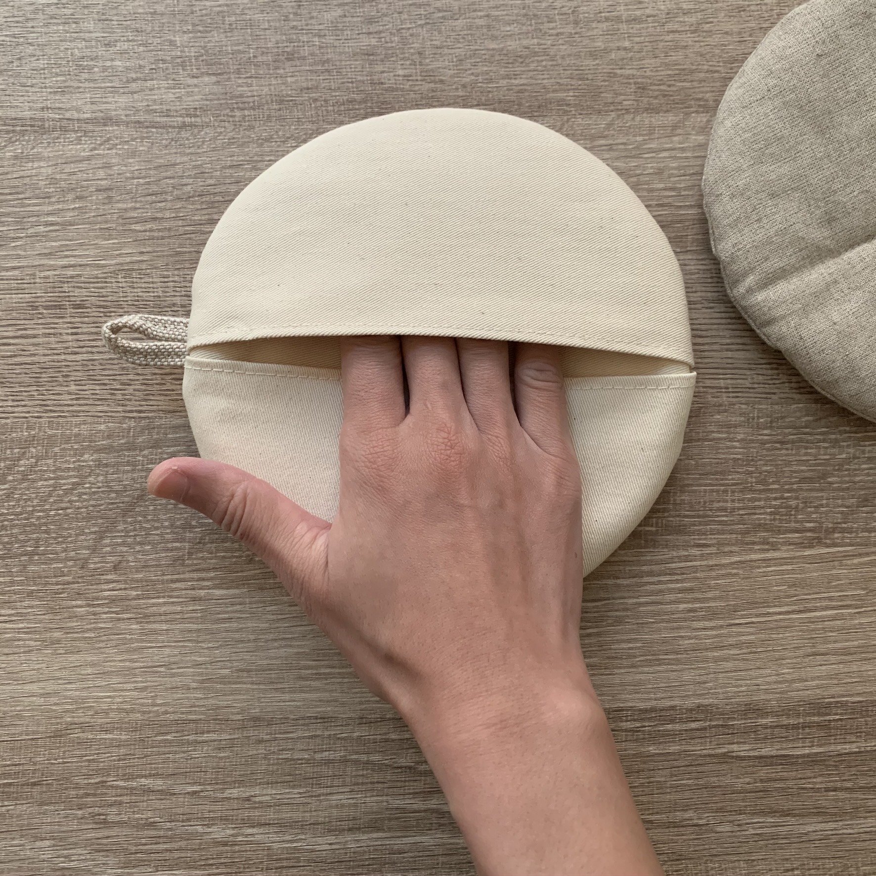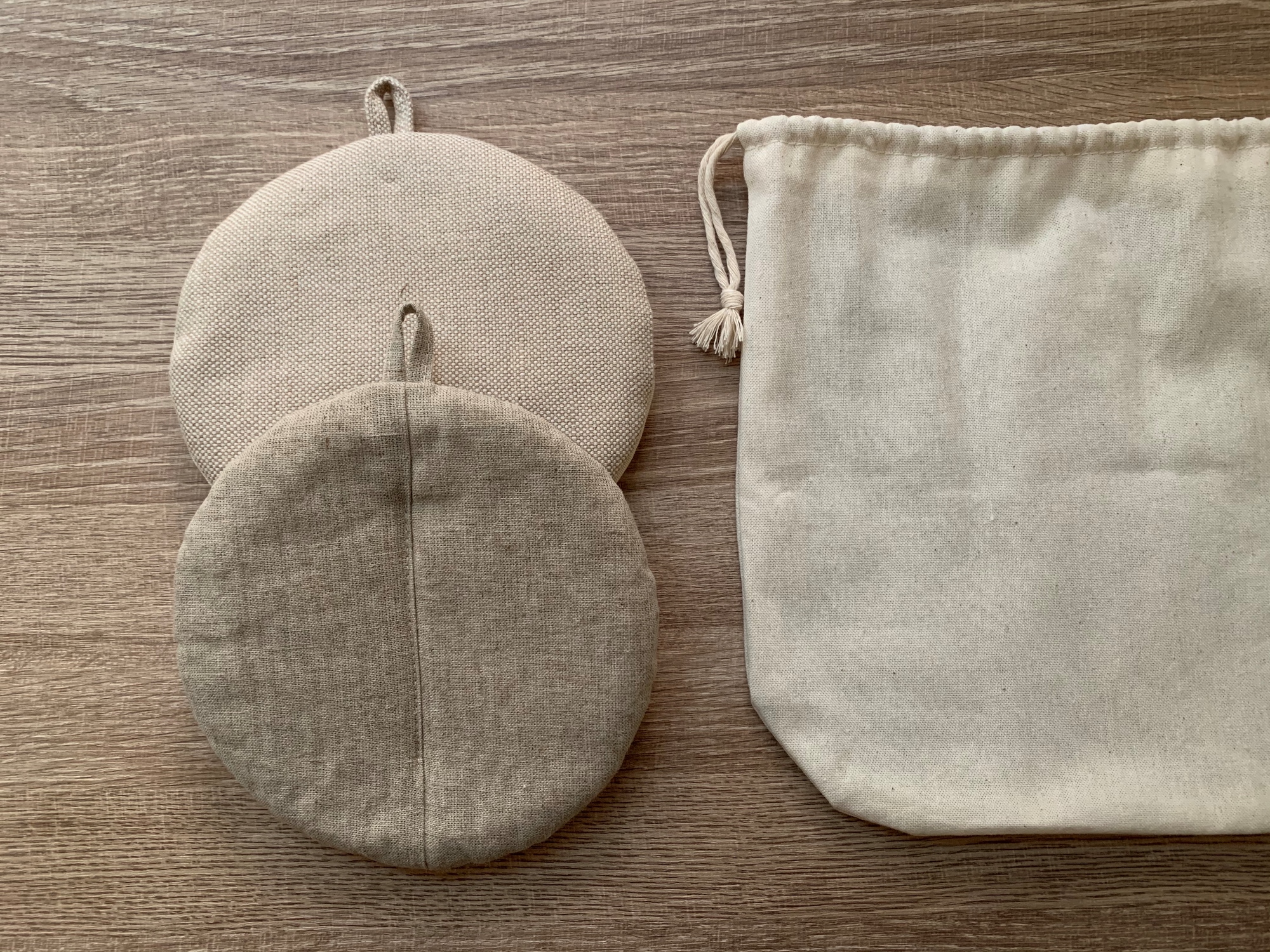 ▍製作物件 _ 土力:天然棉麻兩用圓形鍋墊 2枚+收納袋
