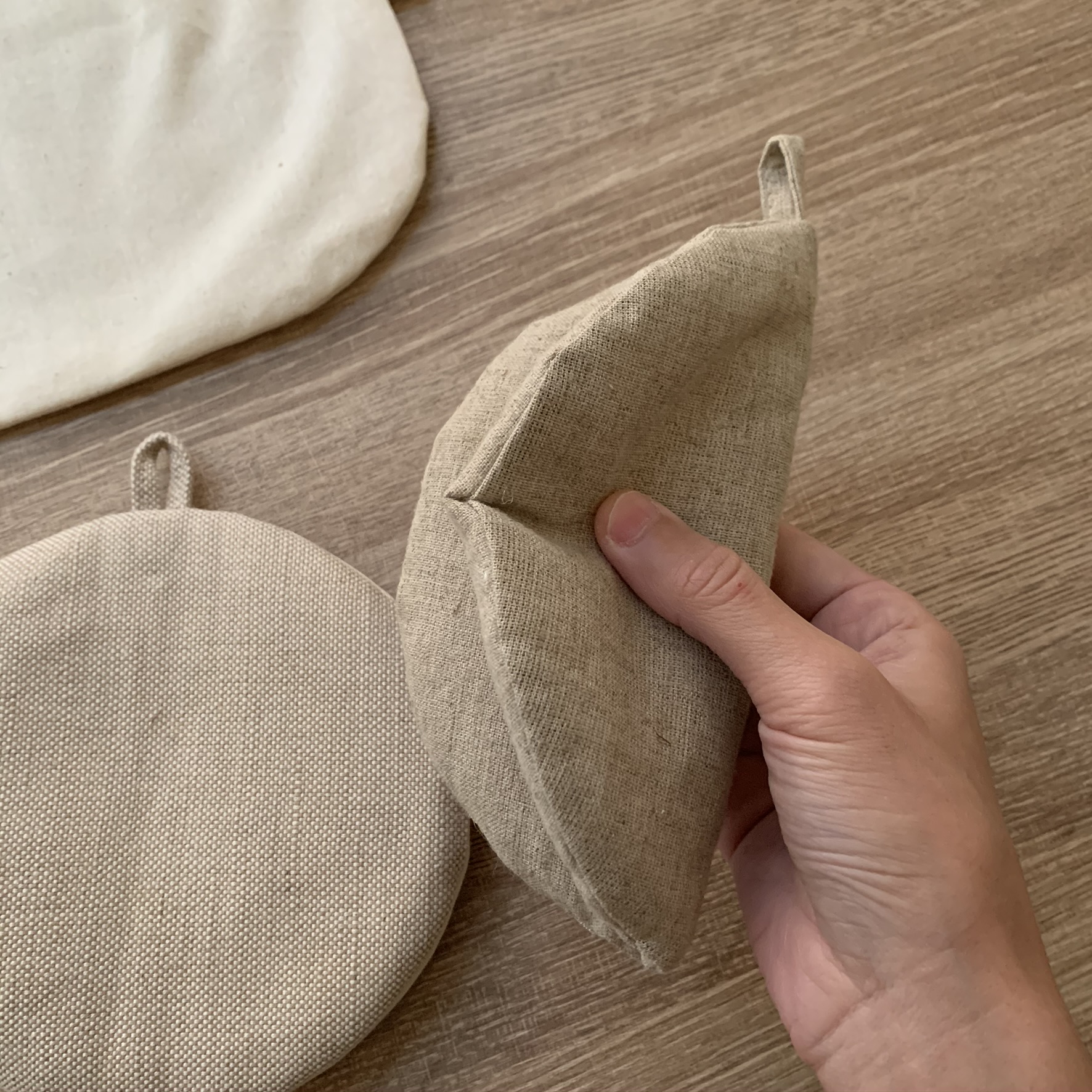 - 材料 _ 製作「兩用圓形鍋墊 2枚+收納袋」的所有材料 _ 選用天然棉麻布料