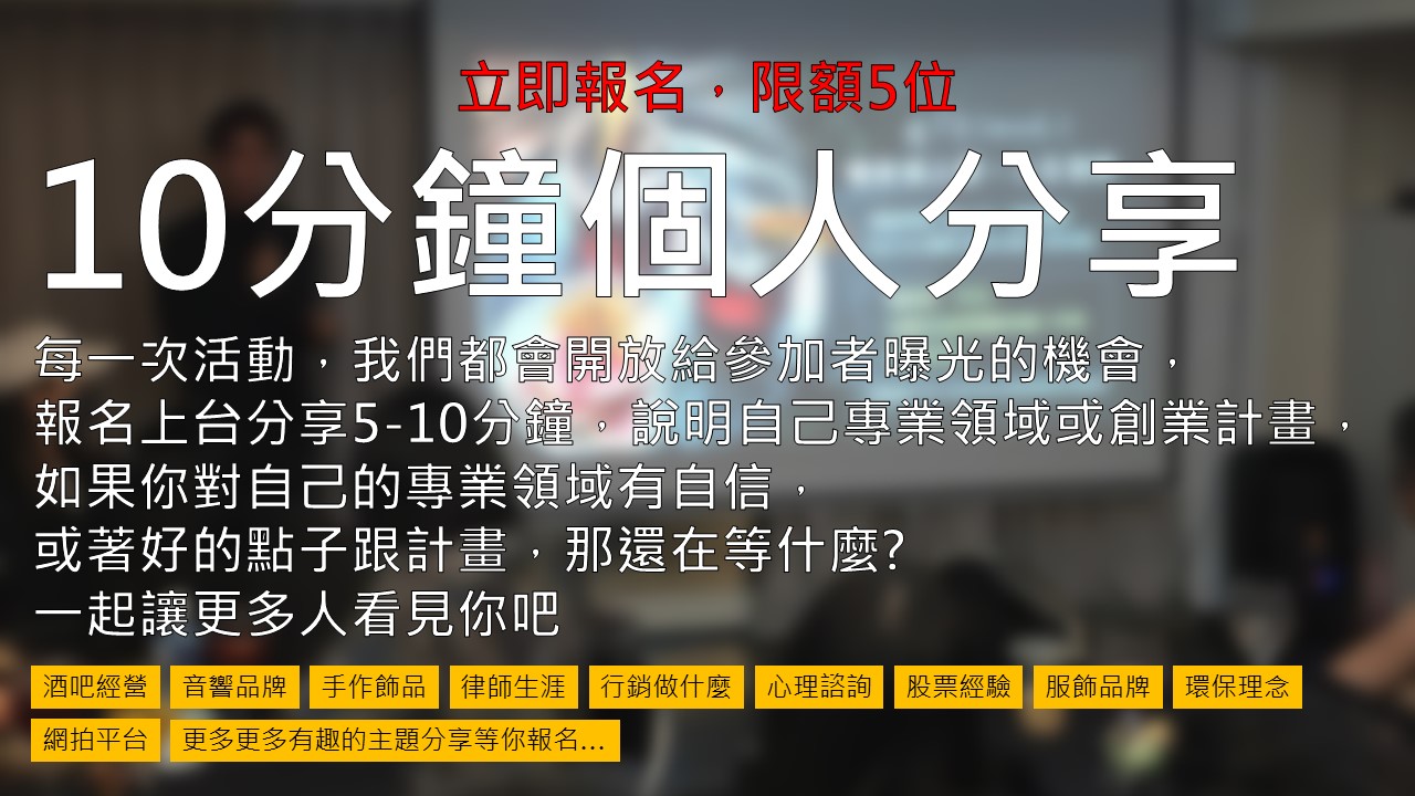 可以準備5-10分鐘的簡報檔讓分享者上台分享