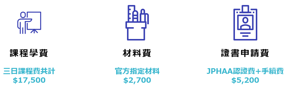 證書申請費用為上繳JPHAA認證費用+手續費用