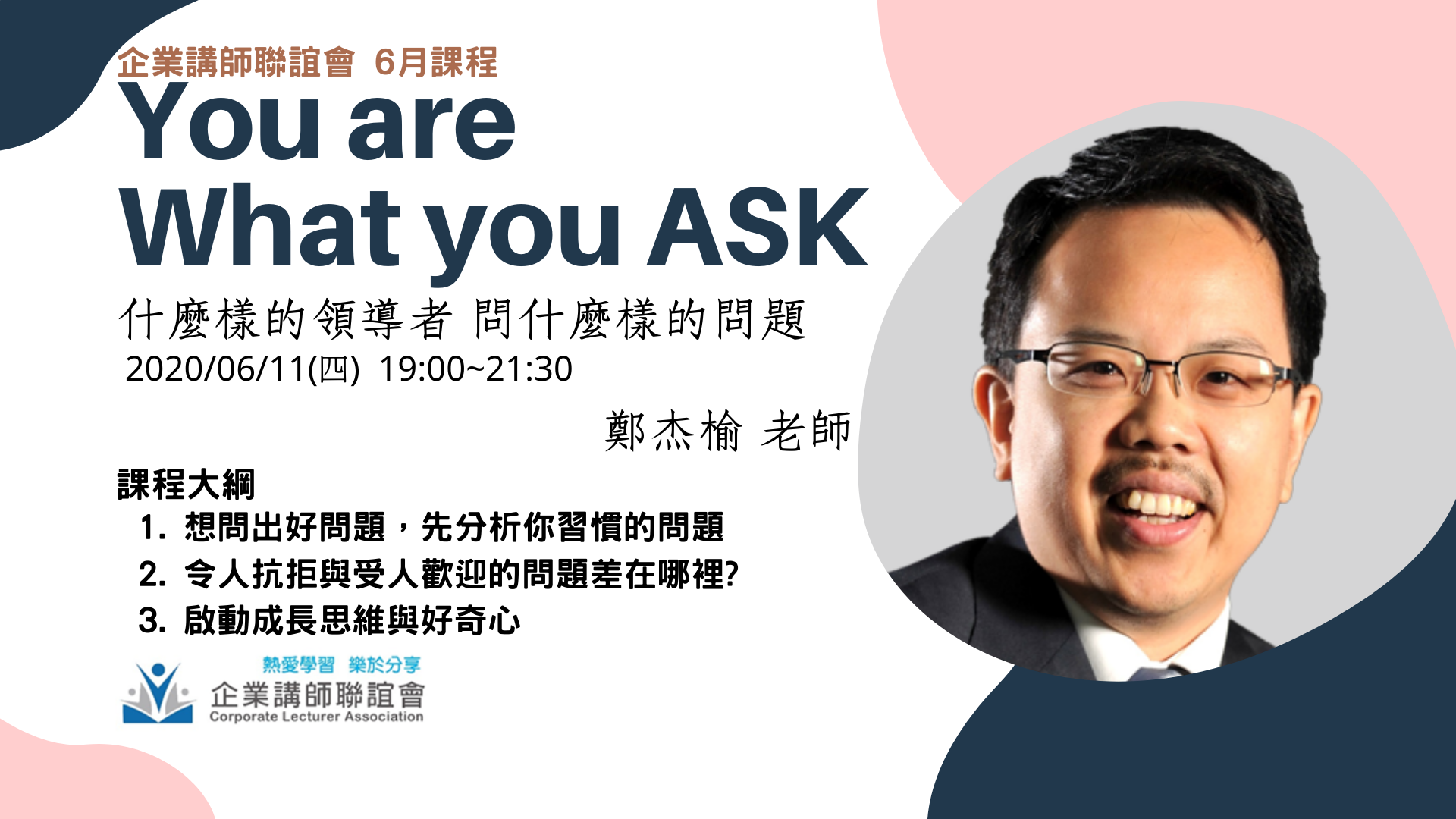 【企講六月份實體課程 6月11日(四) 19:00-21:30 鄭杰榆老師:You Are What you ask.什麼樣的領導者問什麼樣的問題】