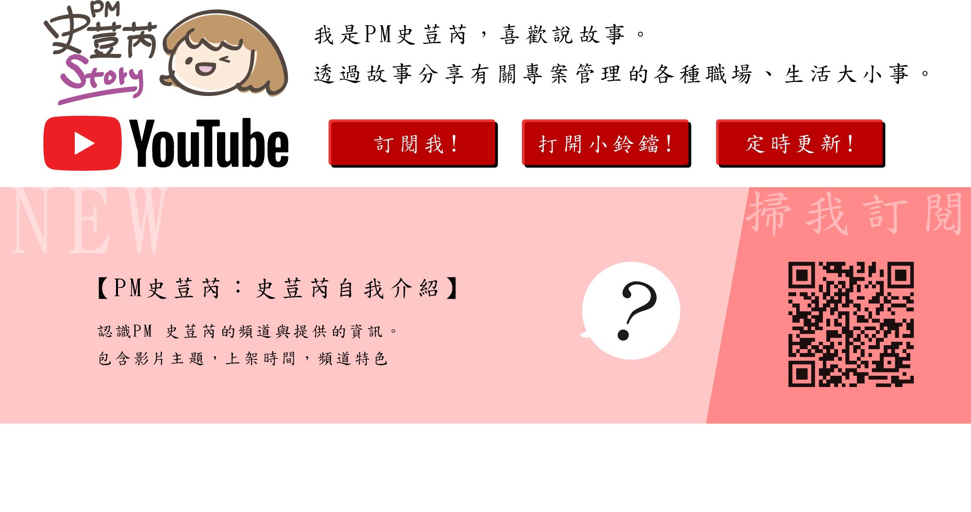 【PM史荳芮:史荳芮自我介紹】https://youtu.be/qB-m6ZoFPbE