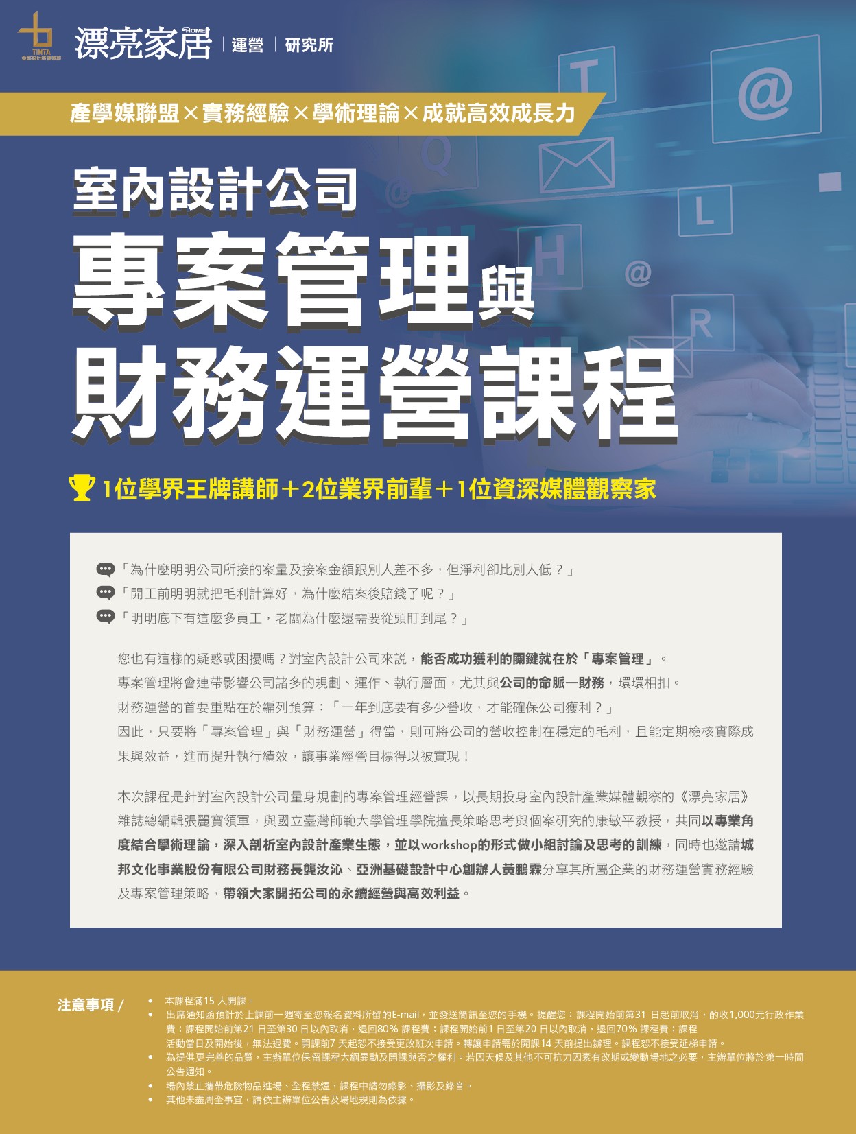 漂亮家居|運營研究所L3:室內設計公司專案管理與財務運營課程