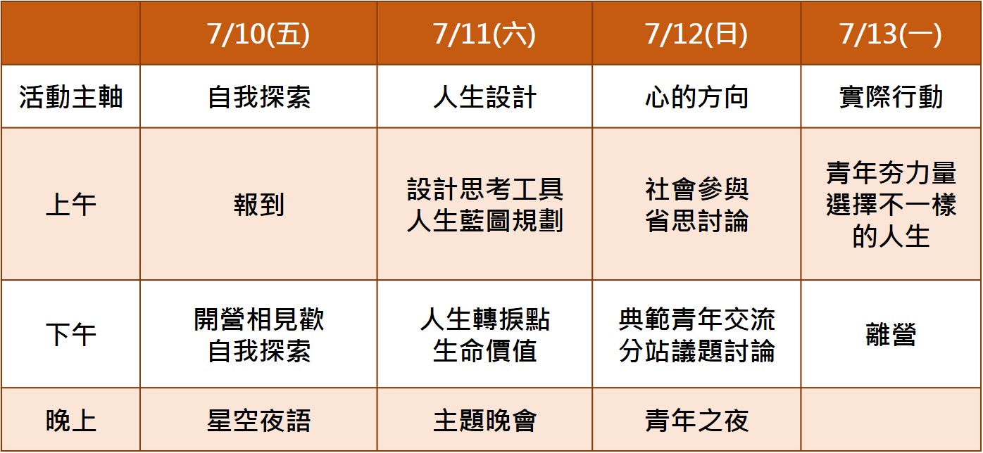 - 注意事項:學員穿著便服;全程提供健康蔬食餐點;為配合營隊作息,請全程參與(含住宿)