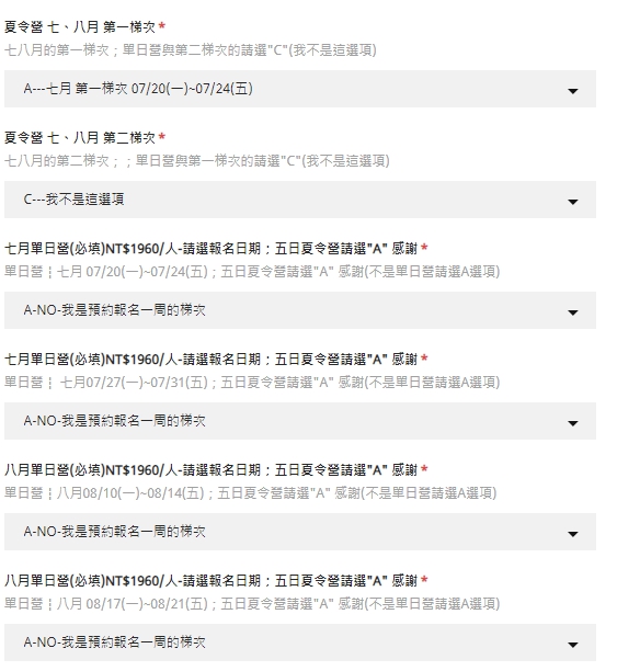 例如~五日營"七月第一梯次"夏令營早鳥的家長