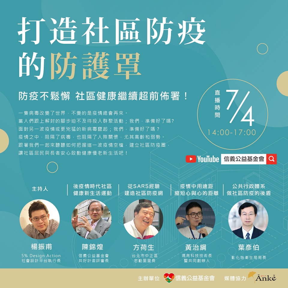 ✅活動中將說明七月開跑的「共好行動徵選」,社區可針對防疫主題提案,有機會爭取雙料獎金最高70萬元!
