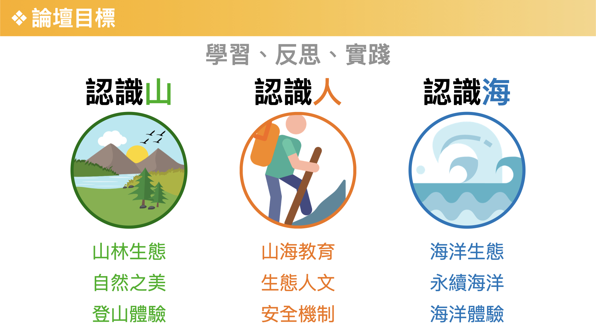 ►認識“人”:保障安全、親身認識山海,也帶您從人文的角度思考人與自然的關係。