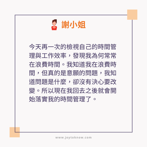 - 時間常常在不知不覺中就流失了,但是還沒完成任務?