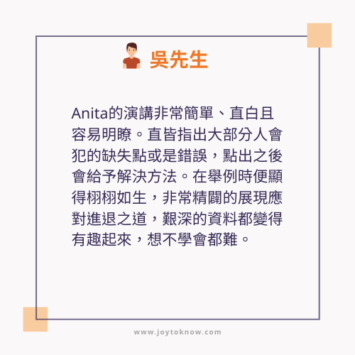 如欲瞭解更多課程內容,歡迎加入【Anita Chen 就去學】LINE@👉👉