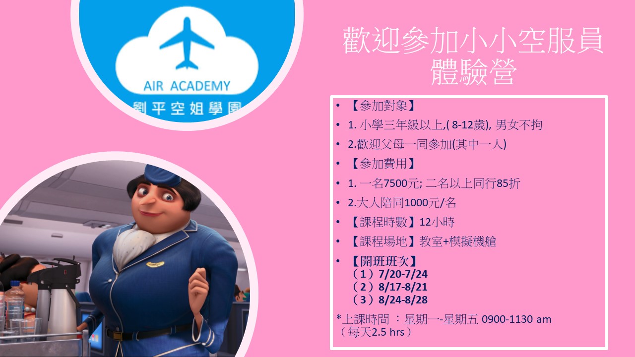 (暑期班)國際小小空服員體驗營(父母可陪同)
