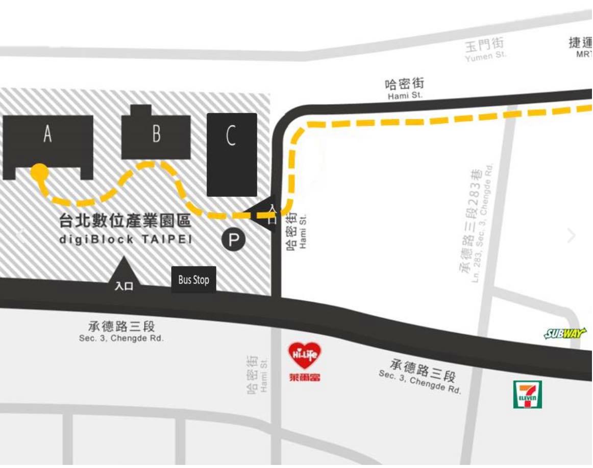 圓山捷運站周邊都設有汽車停車場,於digiBlock Taipei台北數位產業園區旁有摩托車停車場,再請多加利用