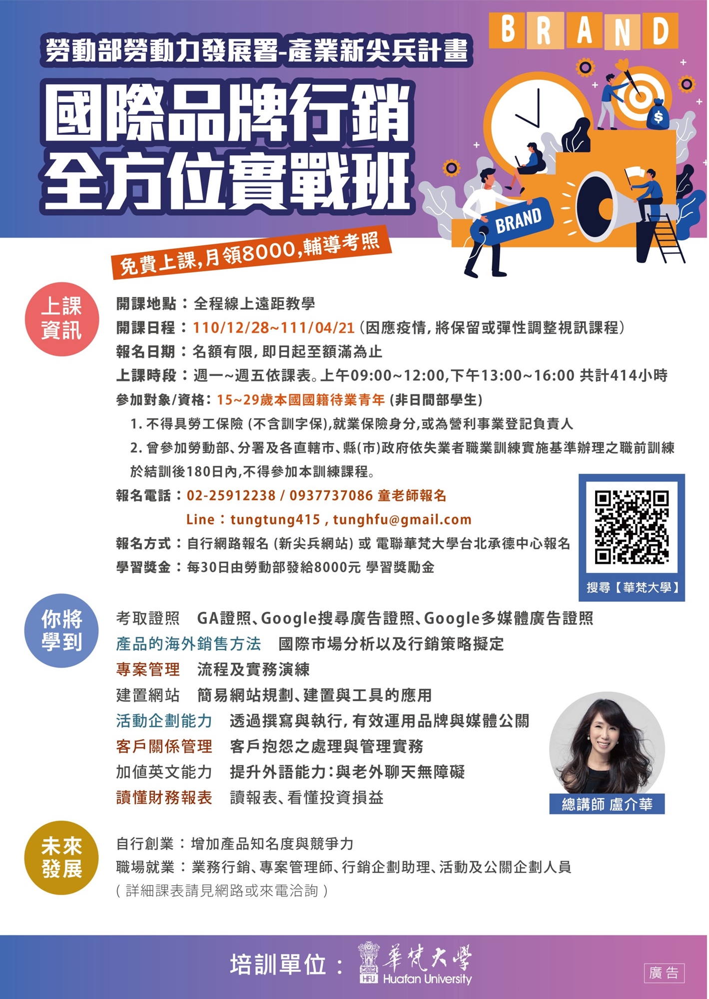 17 | 國際品牌行銷全方位實戰班 | 承德中心 | 12/28~111/4/21 |