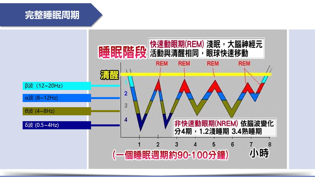 病狀態時,會想睡覺的原因。而失眠者,通常是無法進入第3和第4階段的熟睡期。