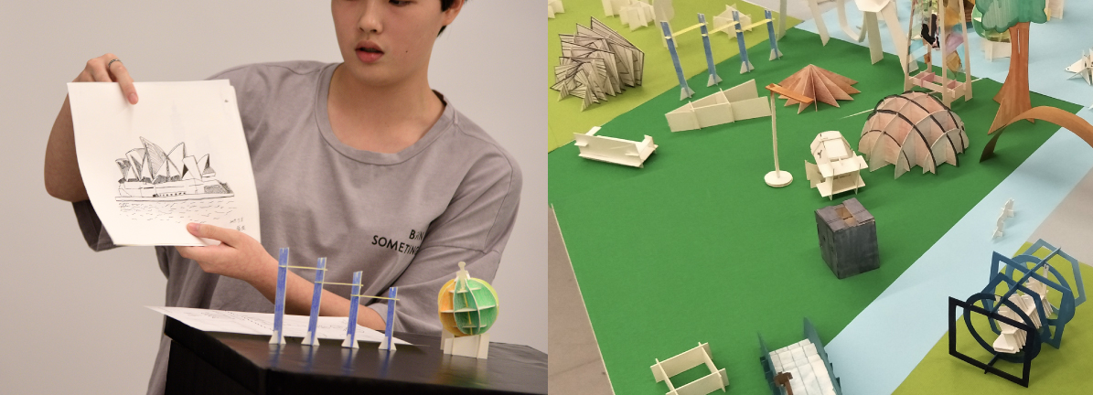 從認識空間元素、手繪思考、模型製作、最終的作品簡報,透過實際材料的組構,創作出屬於自己的建築立體作品,同時學習如何簡報的完整過程。