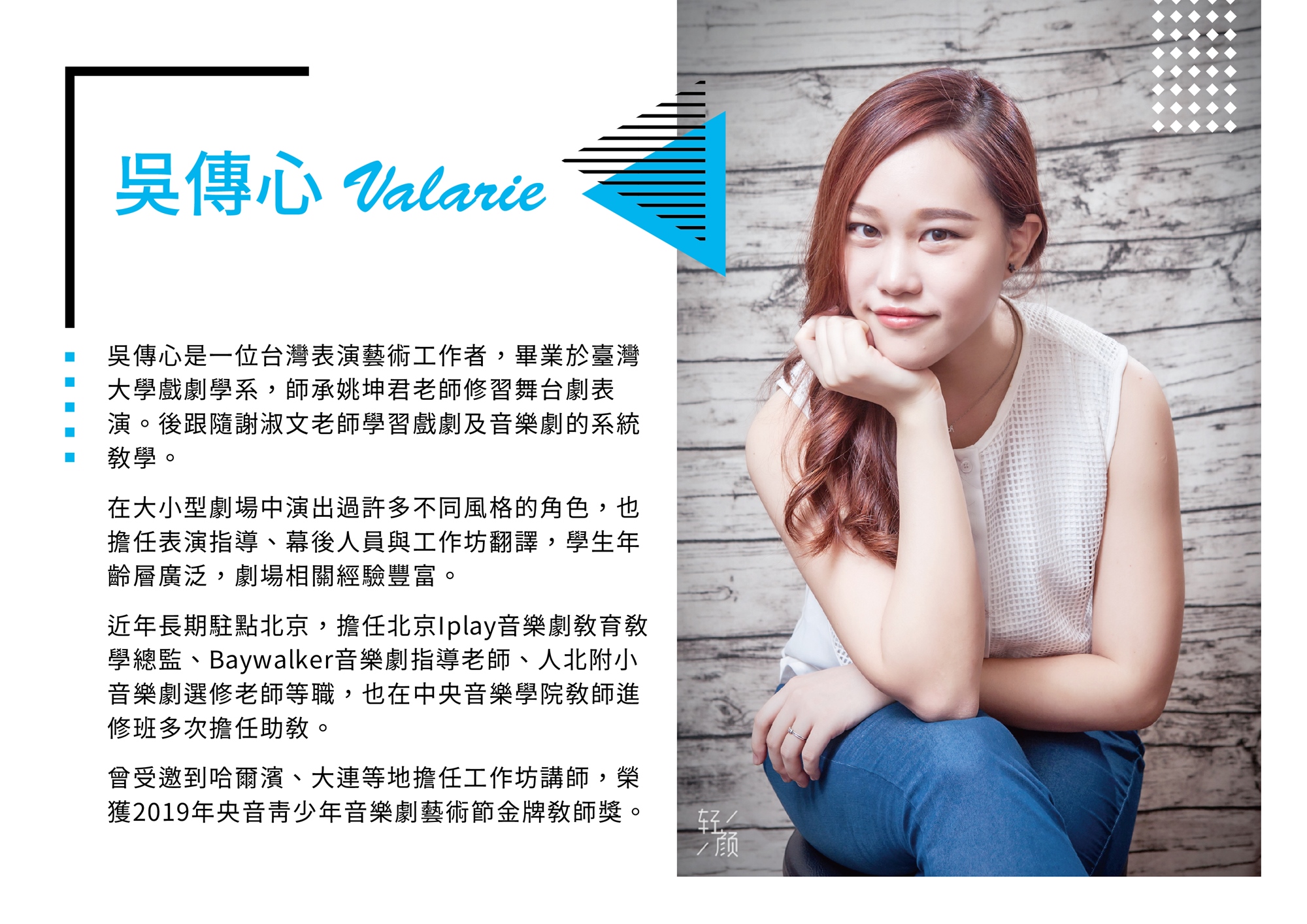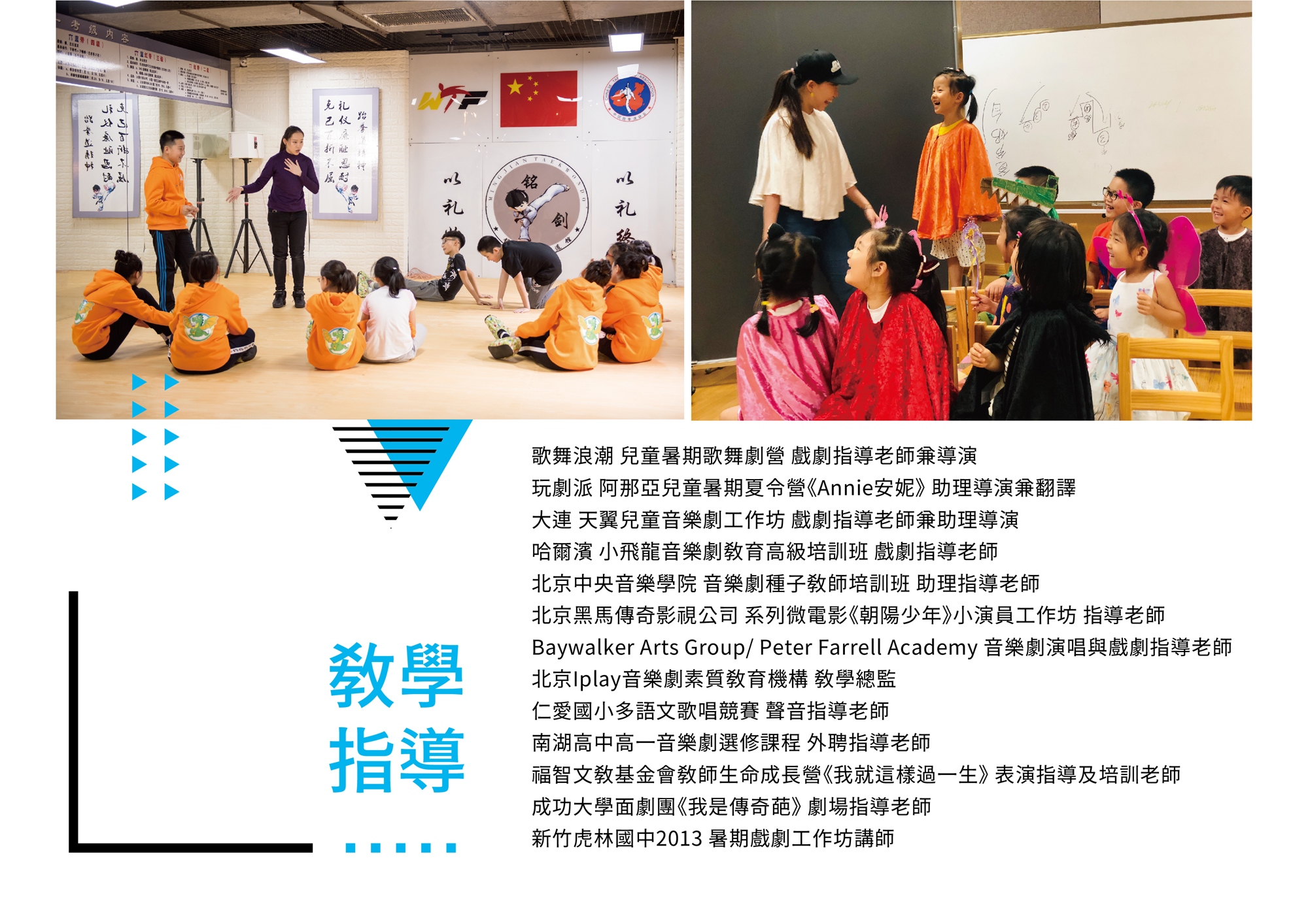 - 課程日期 : 2020年9/5、9/12、9/19、10/17、10/24、10/31、11/7、11/14、11/21、11/28、12/5、12/12彩排、12/13成發(總共13堂,課程都為星期六,成果發表為週日)