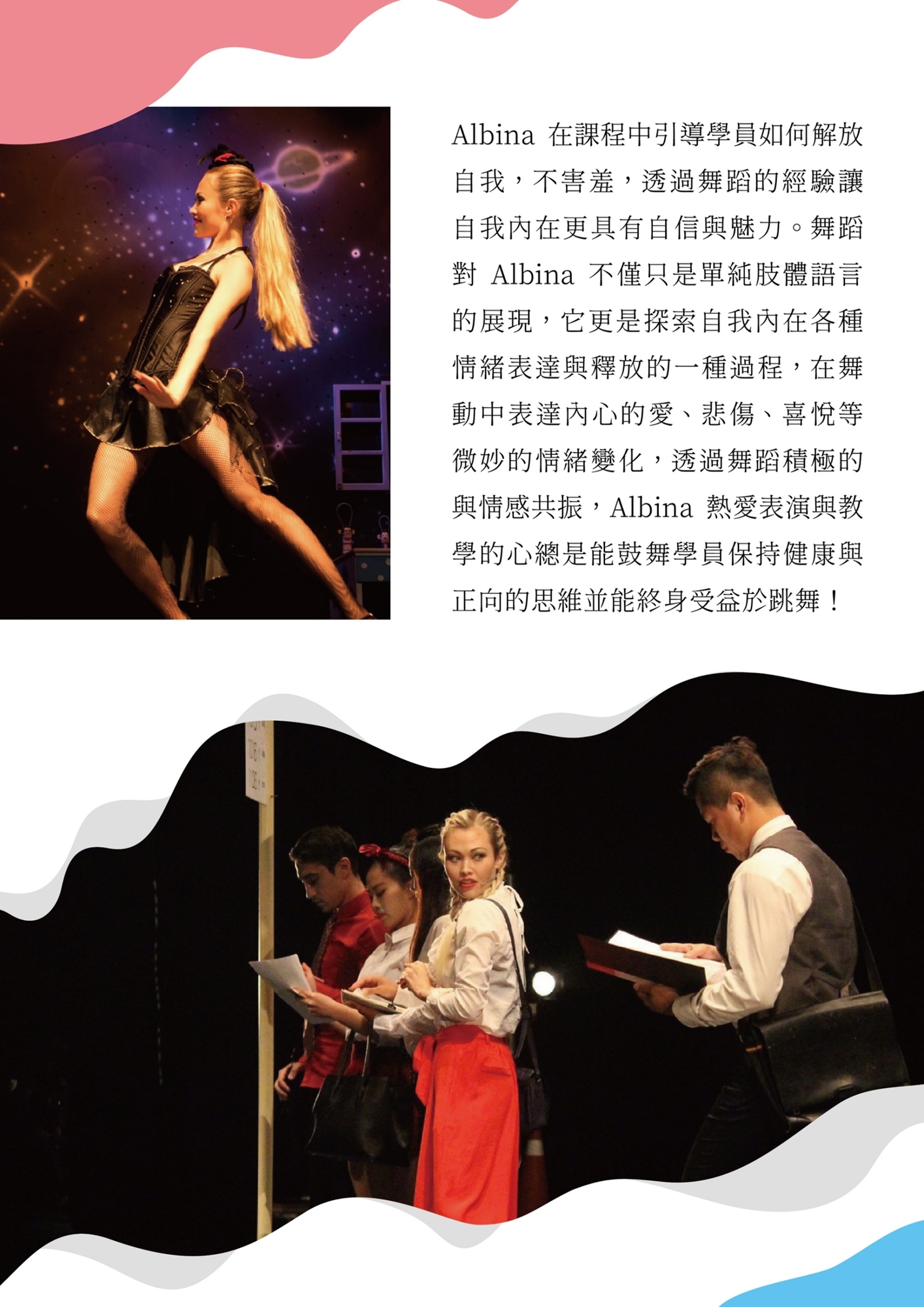 ■ 本中心為了讓不同學習目的與學習經驗的學員都能暢快舞動、收穫而歸,課程都會依照每次專班的學員設計適合程度的舞蹈。